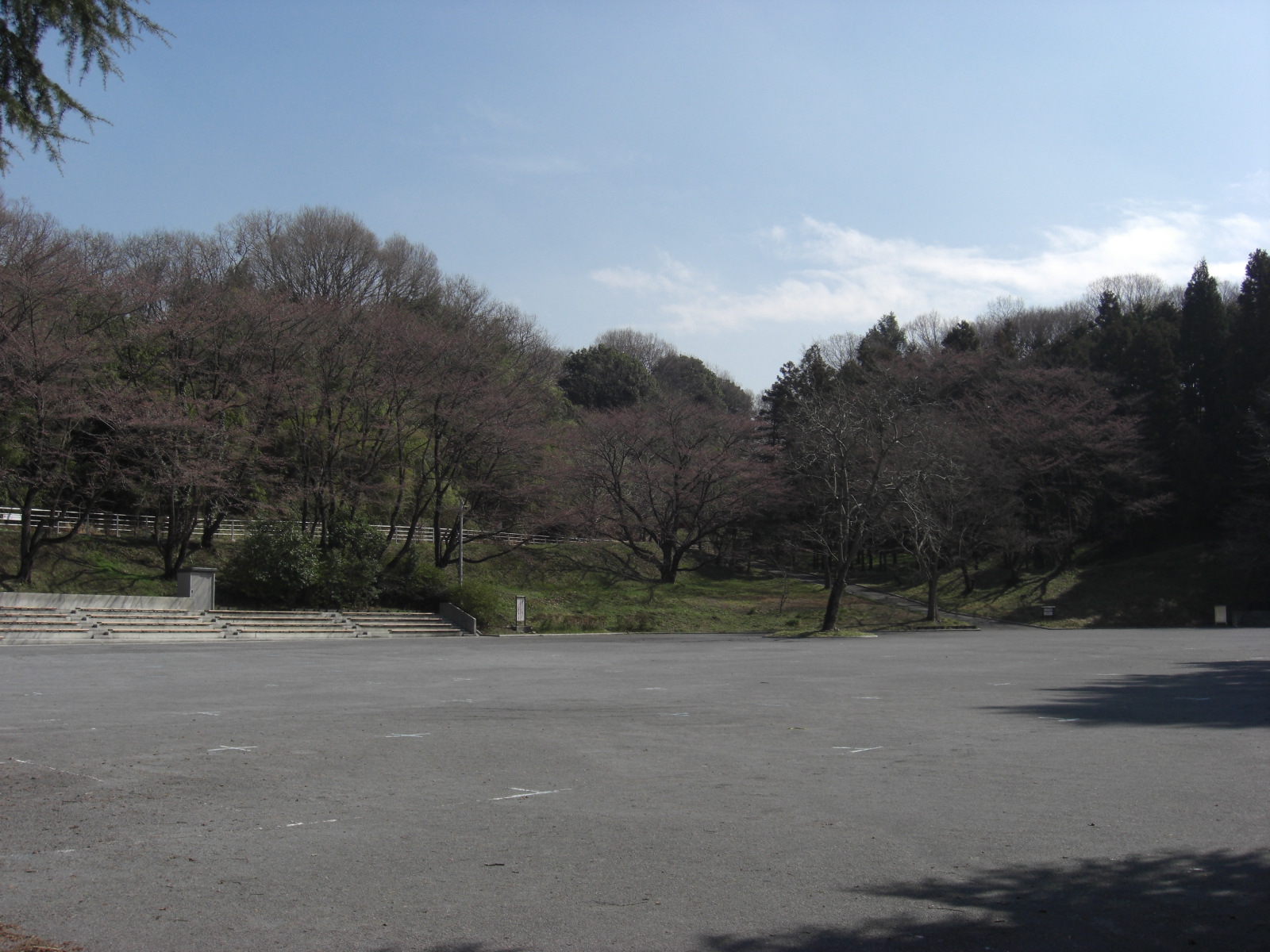 公園の南西からまだつぼみ、サクラ並木の登山道で!富士山へ!!