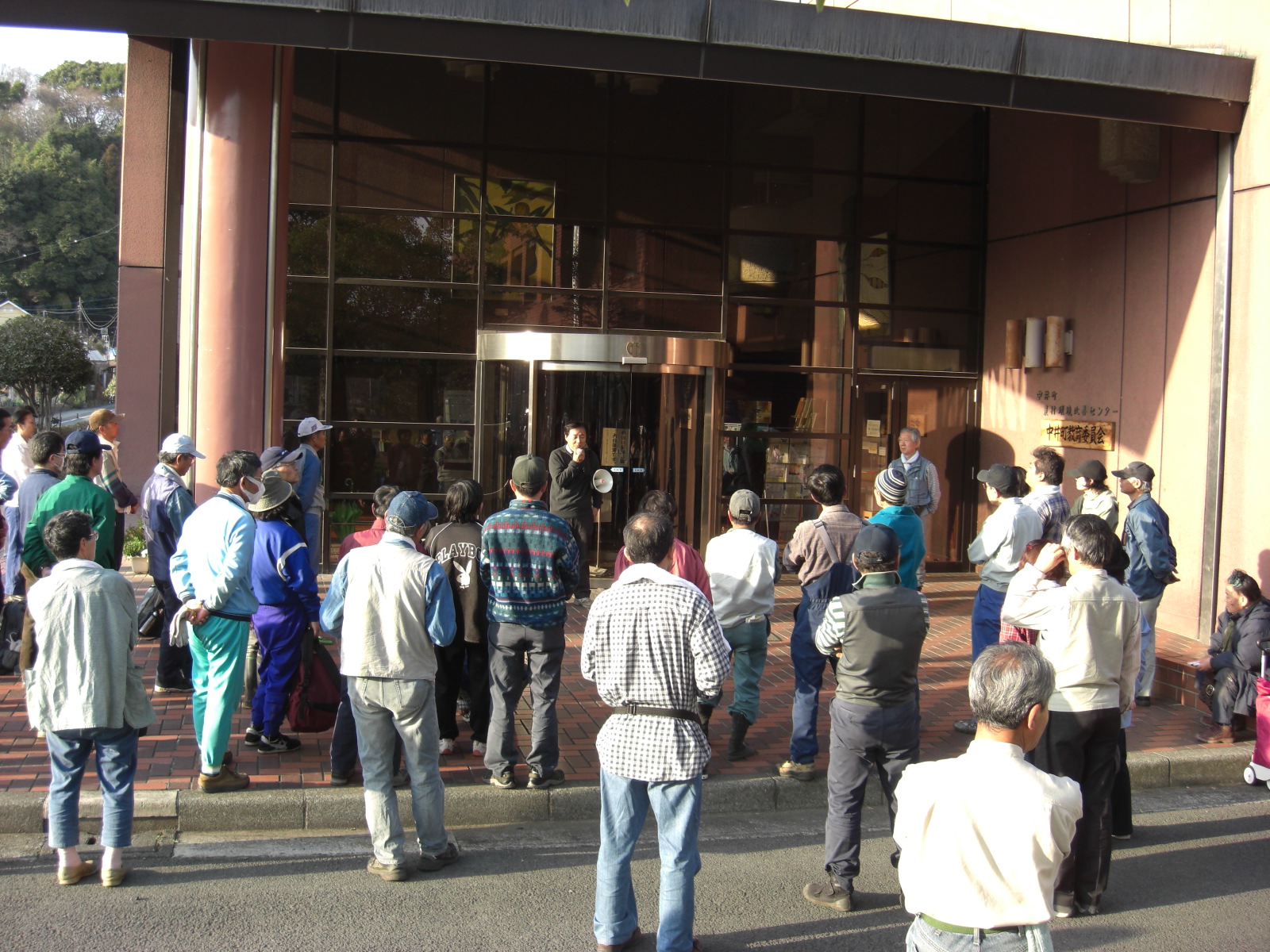 16日(日曜日)晴天のもと中井町役場庁舎前に横浜駅からのバスと現地集合で総勢85名が集結