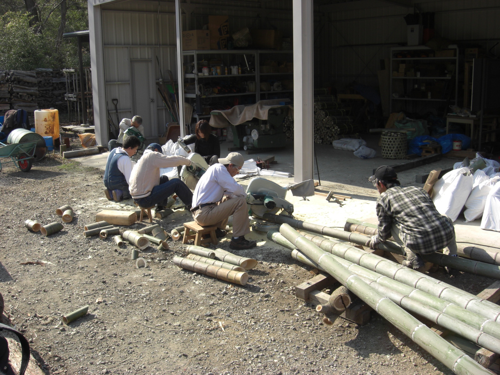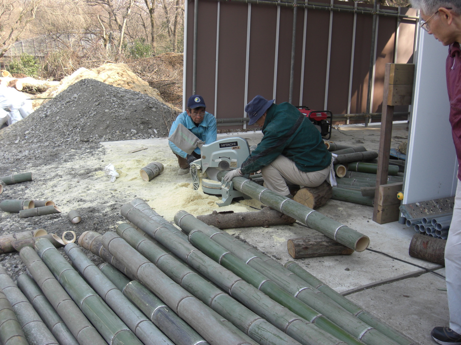竹灯籠作りの2回目、今日の目標は2,000本です。