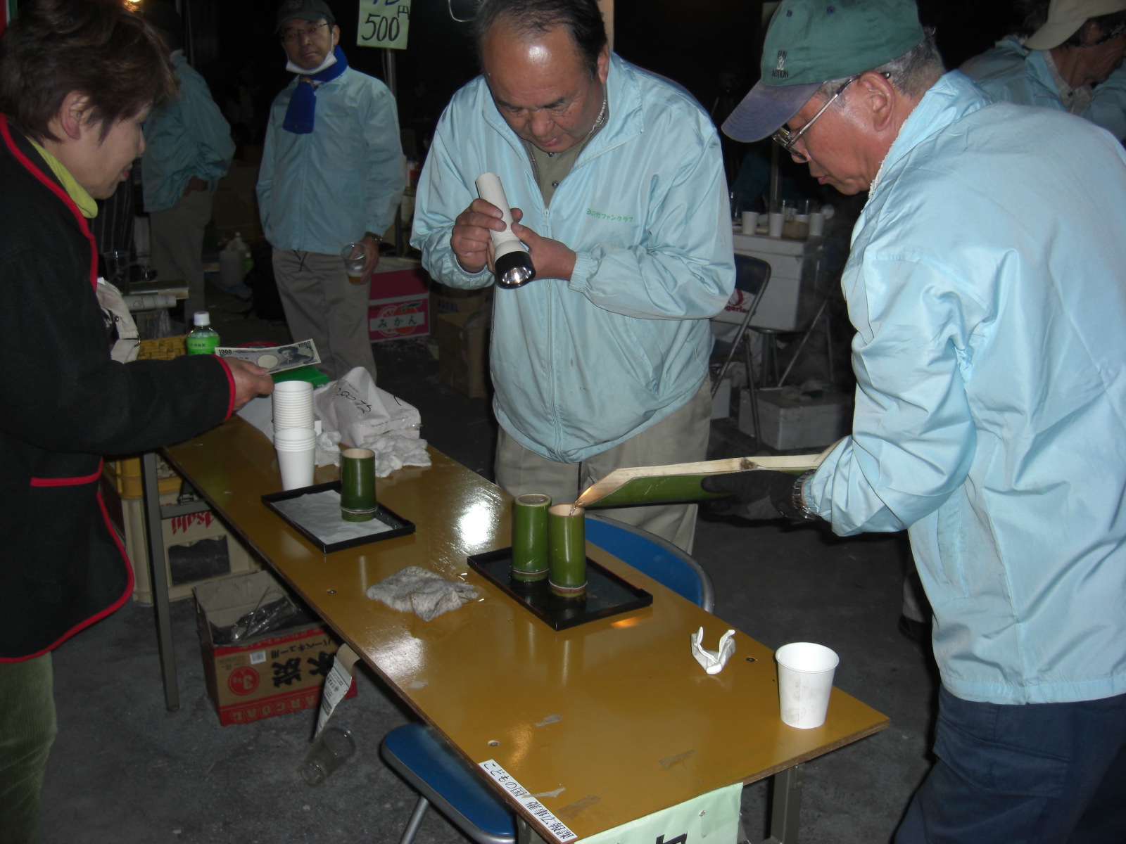初めての夜間開園の出発点そして最終点で皆様を、当会の名物カッポ酒をはじめ温かい飲み物、のどをうるおす飲み物、おいしいものを用意してお待ちしていますのでお求めください