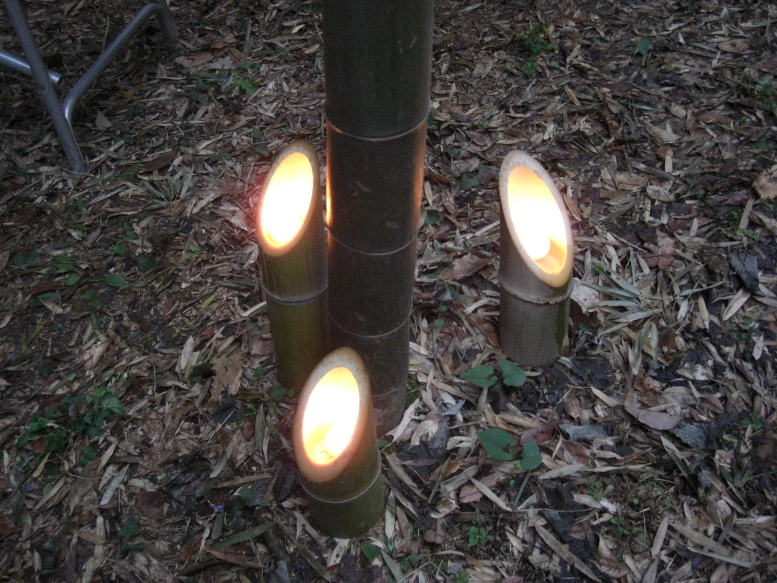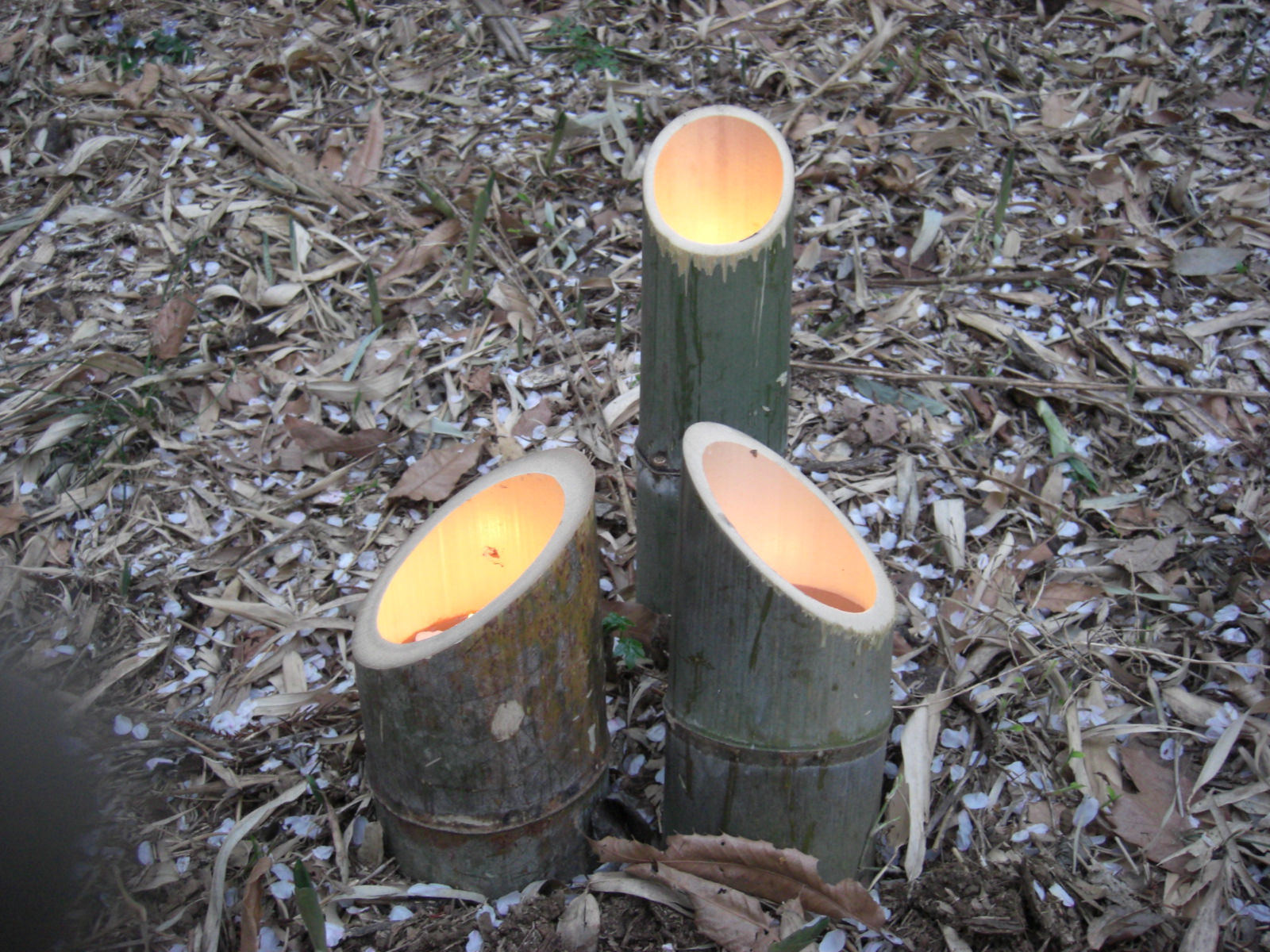 竹灯籠50個を製作して設置し、燃焼試験に夕方5時〜8時までかけました。