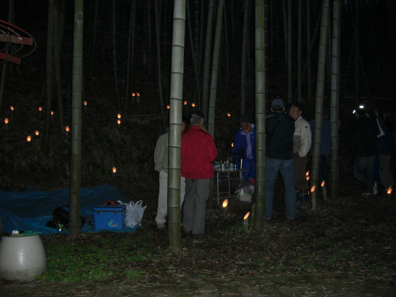 サクラのライトアップと、整備された竹林3ヶ所での竹灯籠祭りは、幽玄の世界に包まれた中でみなさん大満足です。