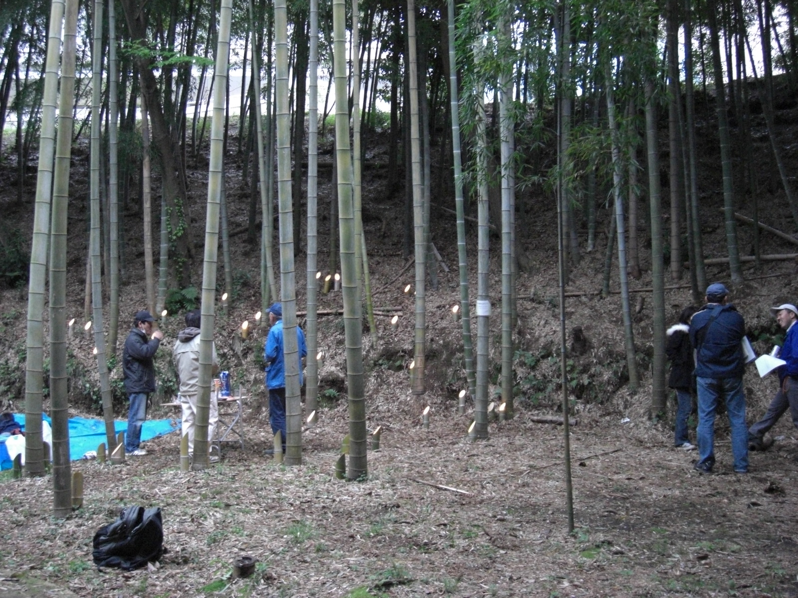 たくさんのボランティアの力で竹林の整備をして、間伐材を使った竹灯籠まつりに協力する 日本の竹ファンクラブ