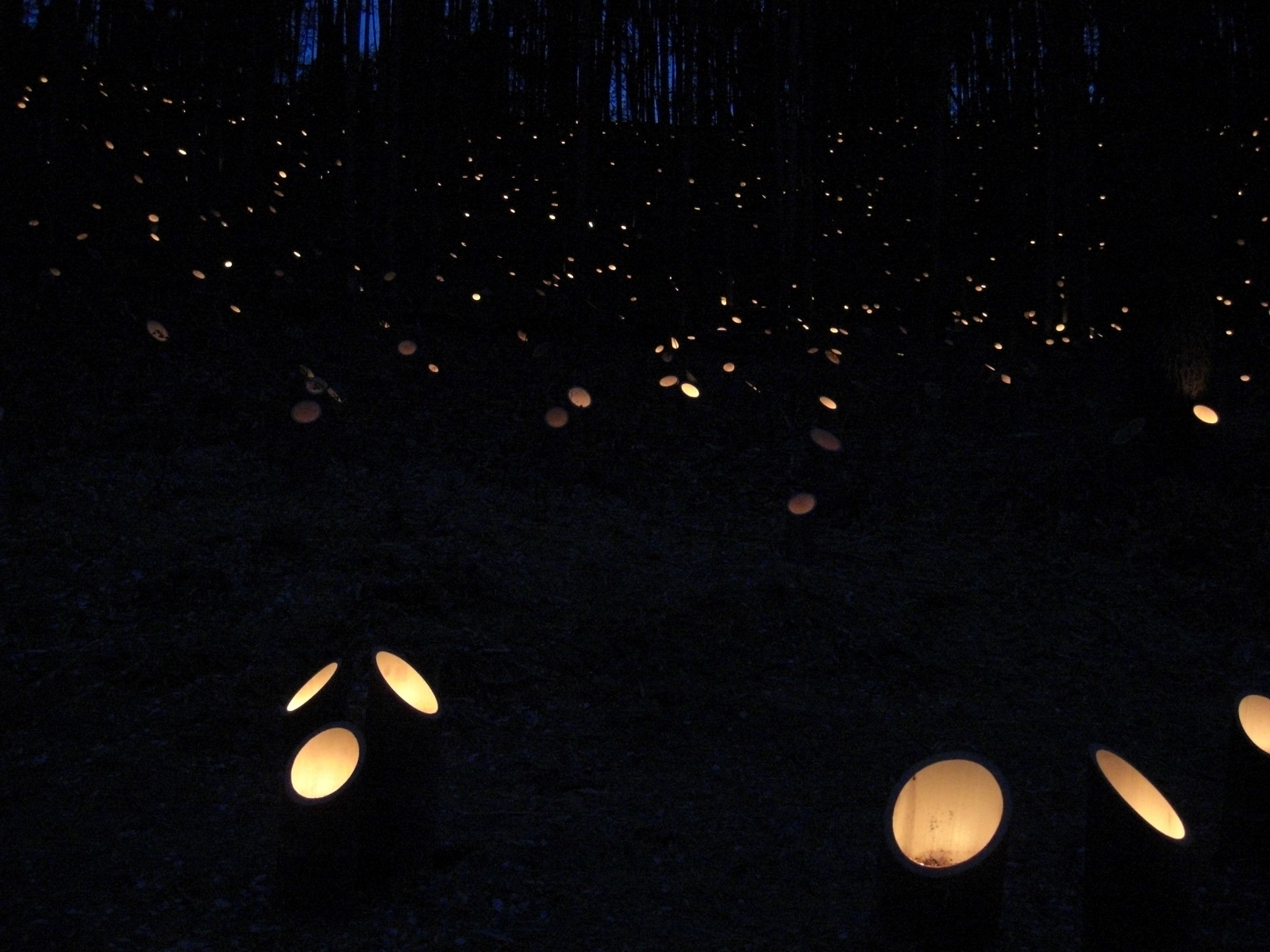 竹林の竹灯籠に囲まれてディジュリドゥ演奏のはじまり