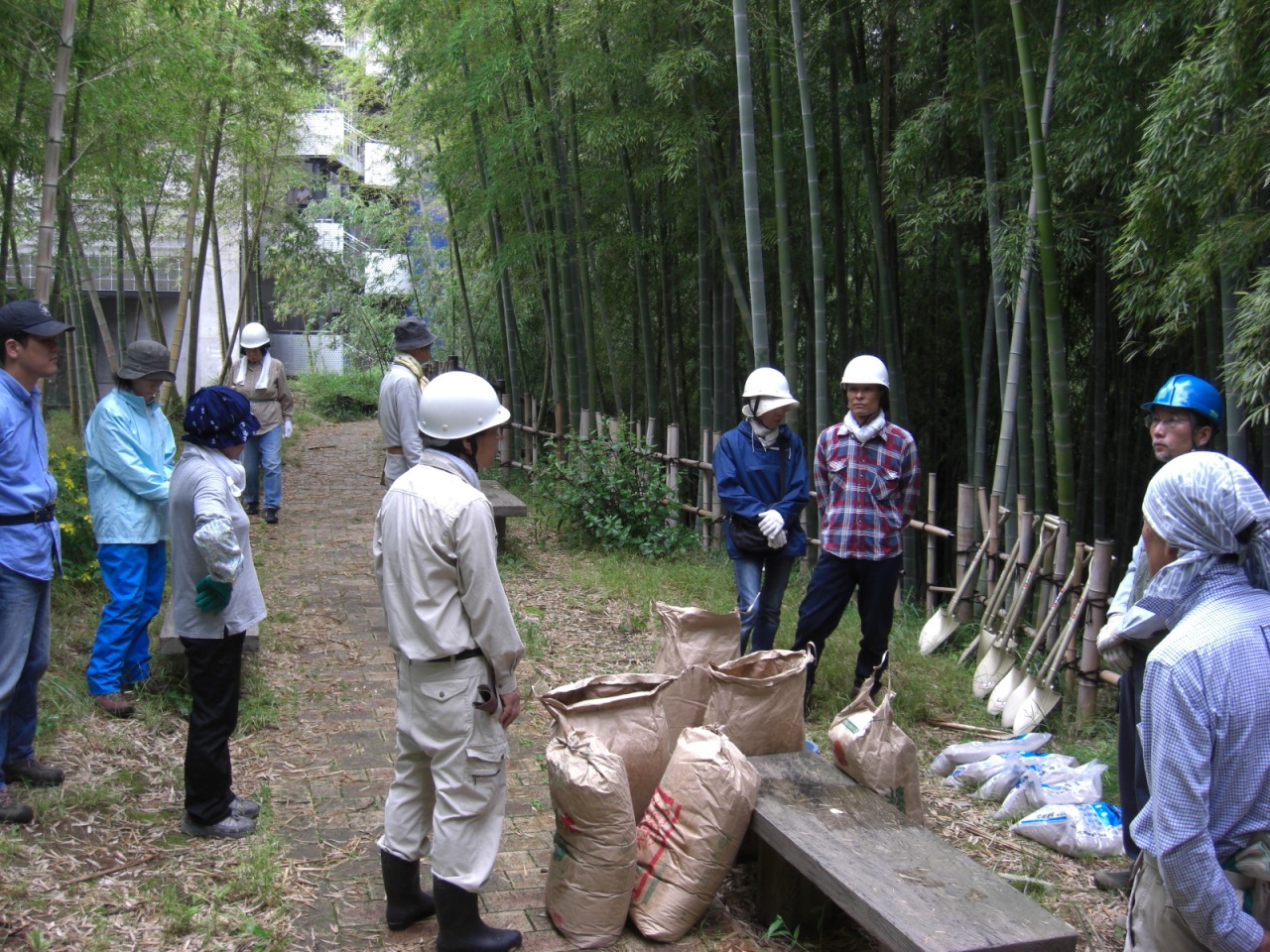 最後に全員で道具箱、道具類の清掃整備をして道具にありがとう、参加者一同秋の再会を誓って解散、竹林に静けさが戻りました