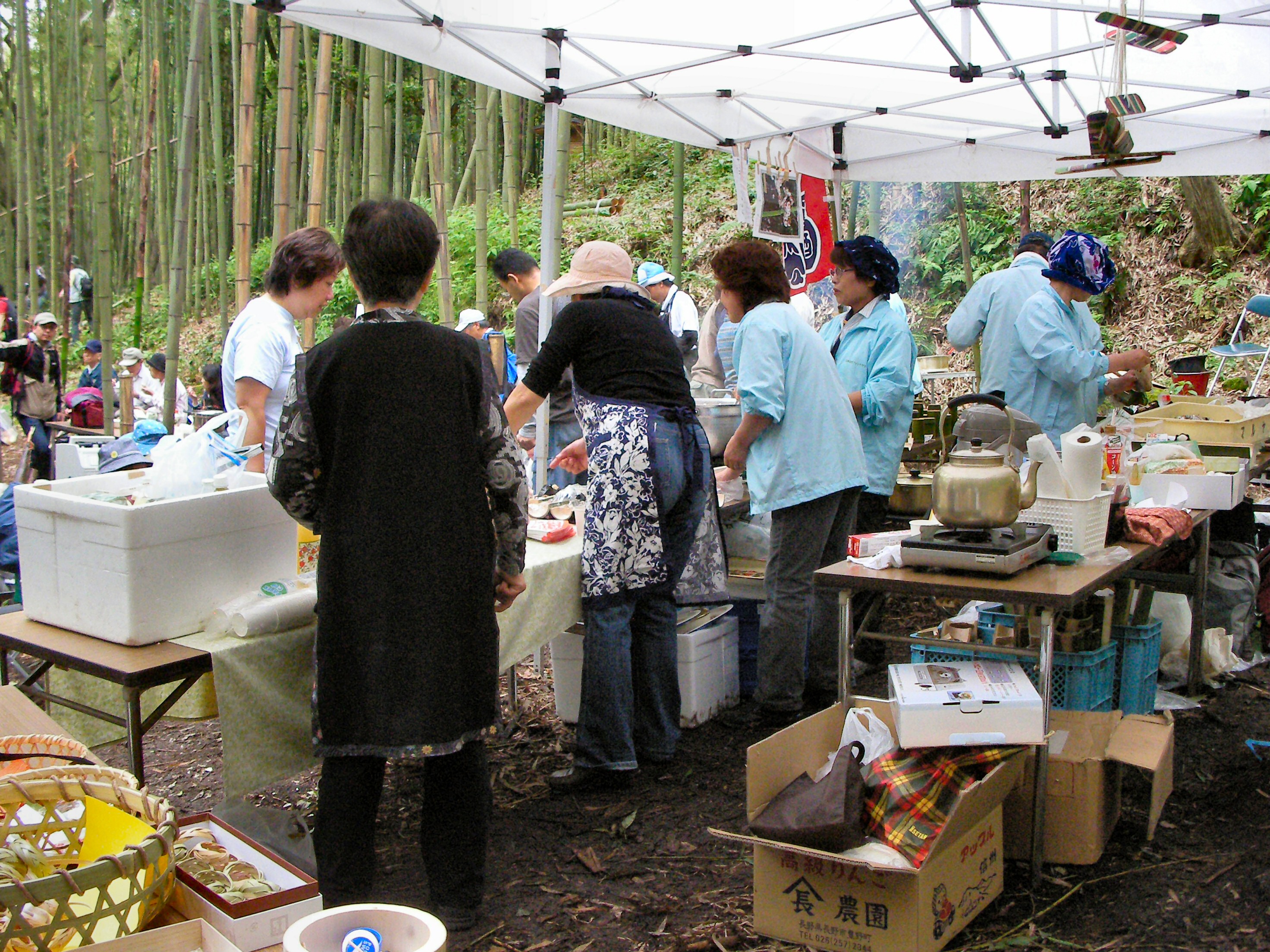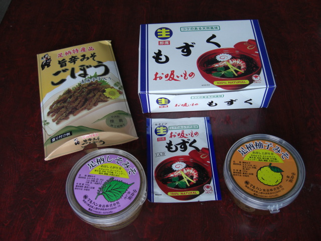 ふだん入ることのない竹林で、ワイルドな野外料理を味わい、野菜を買い、地元のマルハン食品さんが出店した、生もずくのお吸いもの、足柄柚子みそ、足柄しそみそ、旨辛みそごぼうを買いニコニコ