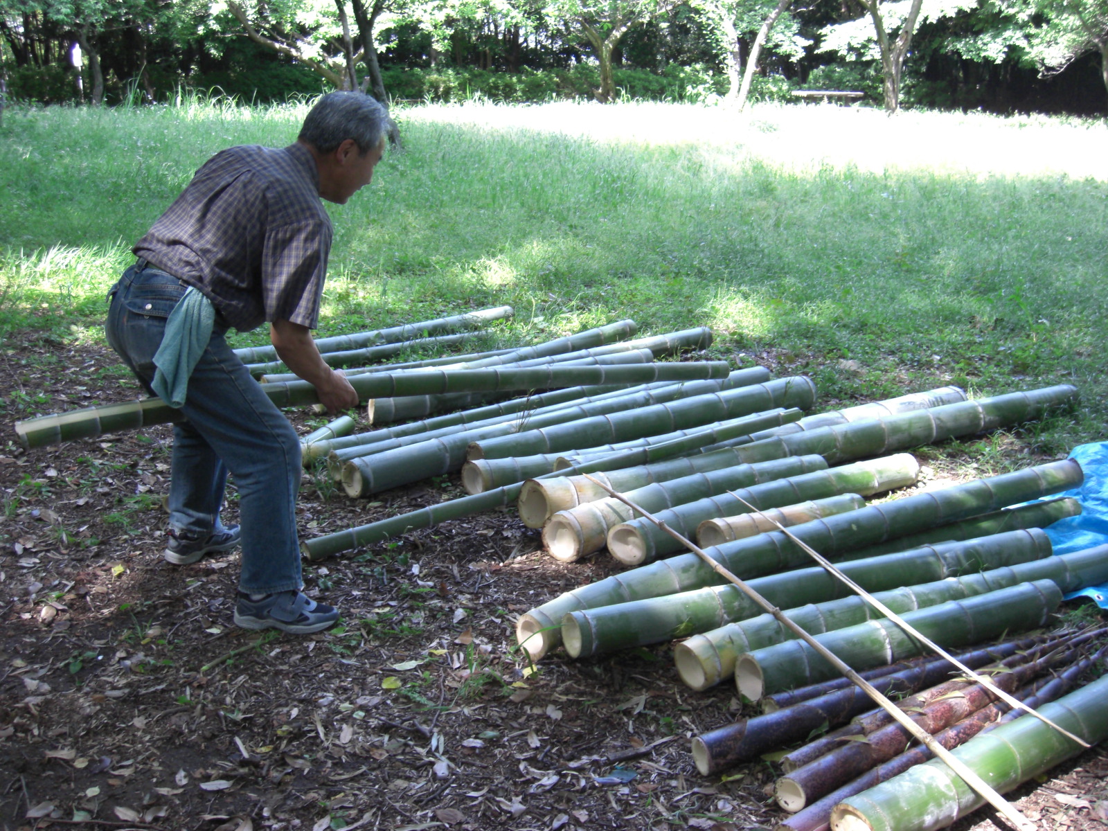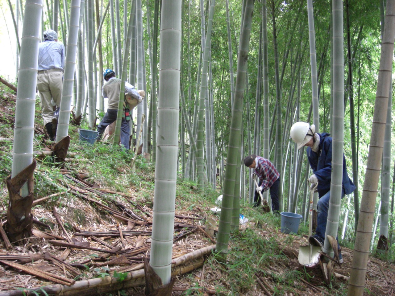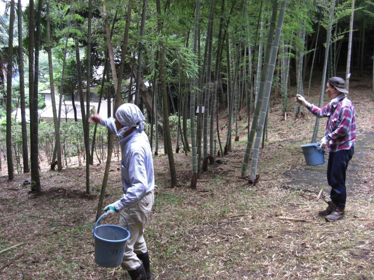 お礼肥のあとは、東のモウソウチク・マダケエリアで若竹、細竹の処理をして午前中で作業を終えました。