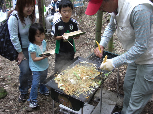 2日目の15日には、採りたてマダケ竹の子がたっぷり入りの焼きそばに、力を注いでスムーズな進行、スタッフも楽しい1日となりました