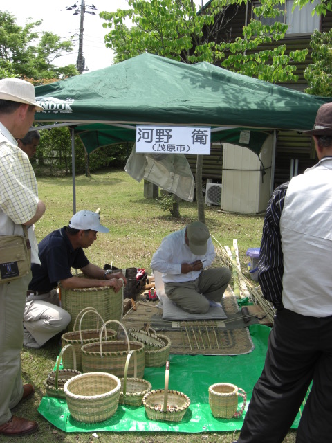 およそ50の小テントブースに千葉県指定の伝統工芸師の竹工品の製作実演、生活日用品・竹細工品の展示販売、また竹のミニ博物館では上総和竿、南総尺八等がありました