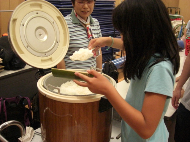 会場の多目的ホールで教室の受付が始まる頃、メインプール・飛び込み台裏の倉庫ではすでにお昼の準備が始まっていました
