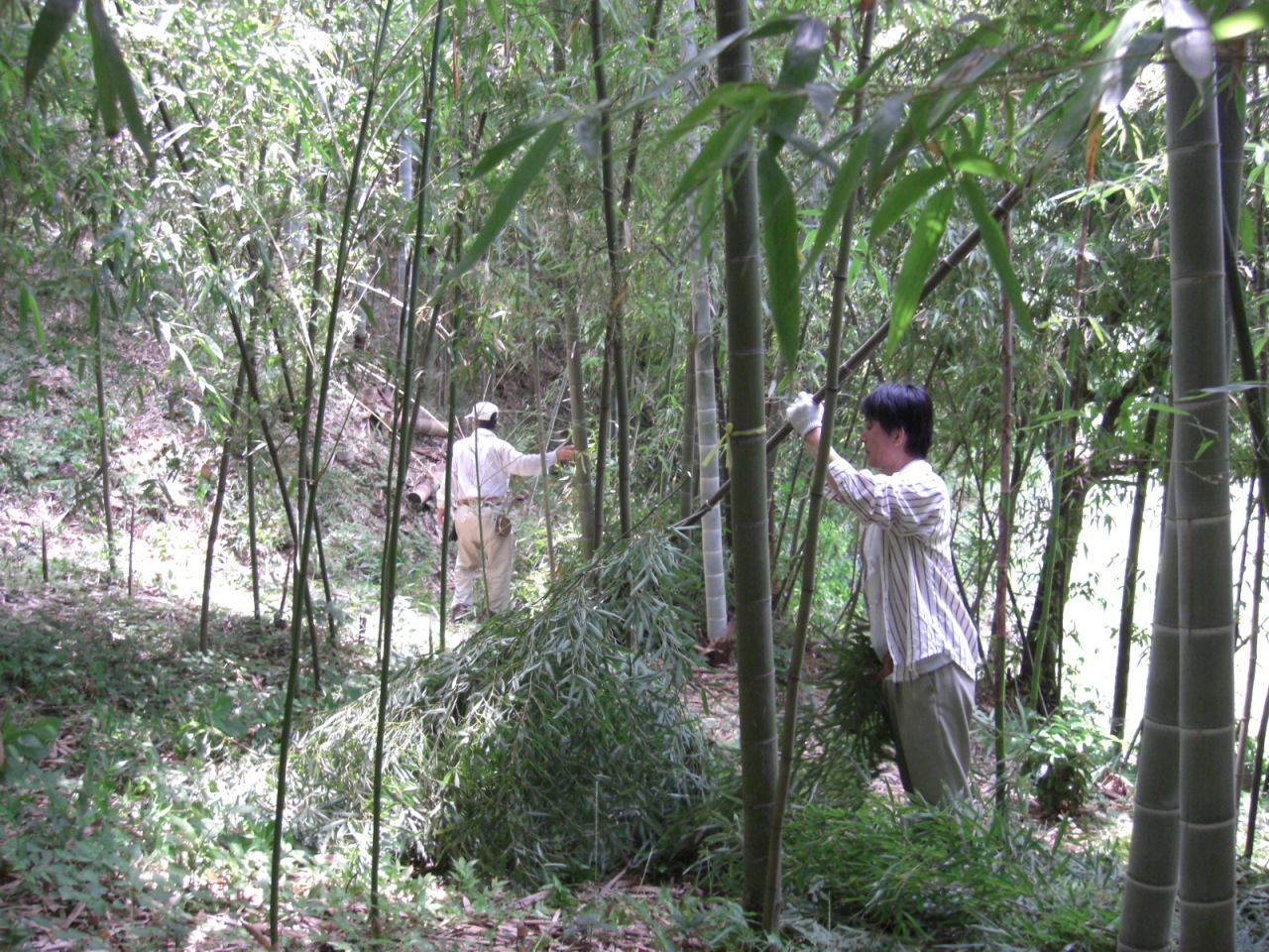 5日には日本の竹ファンクラブ竹取協力隊が、この新生若竹の成長を確認し、5月になって筍が出てきたマダケエリアを中心に親竹の密度管理をしました。