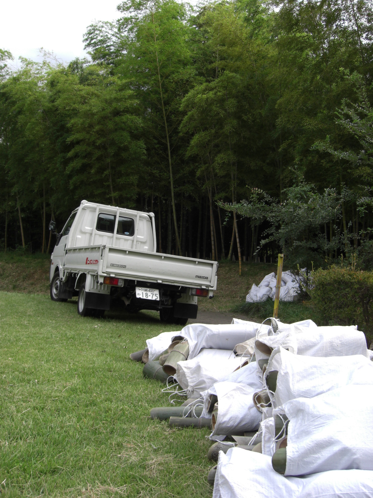 午後1時には中井町に行ってた別班が到着、マダケの竹筒が約20本積んでありました。