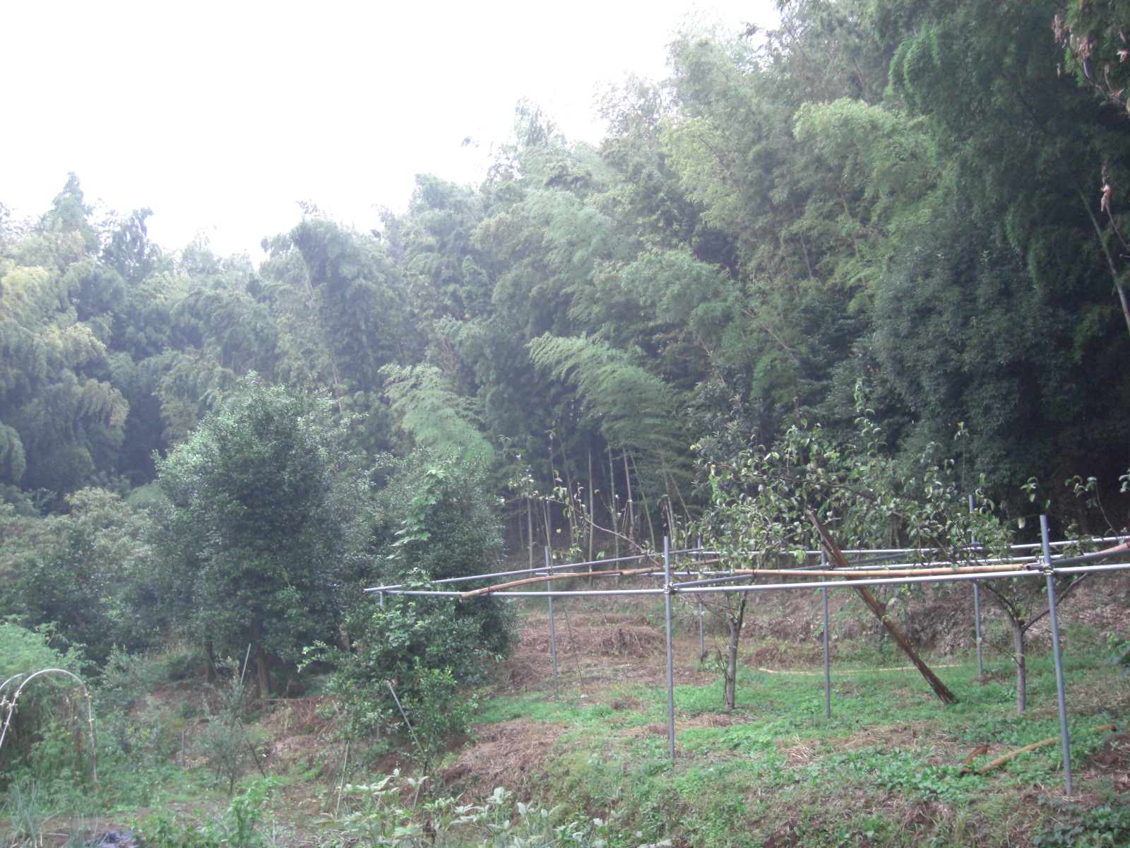 日本の竹ファンクラブ会員以外の参加者もあり足場状況等を考慮して、中止となりましたが台風の来る前に、白井宅にお邪魔して雨の竹林状況を見てきたので写真をご覧ください。