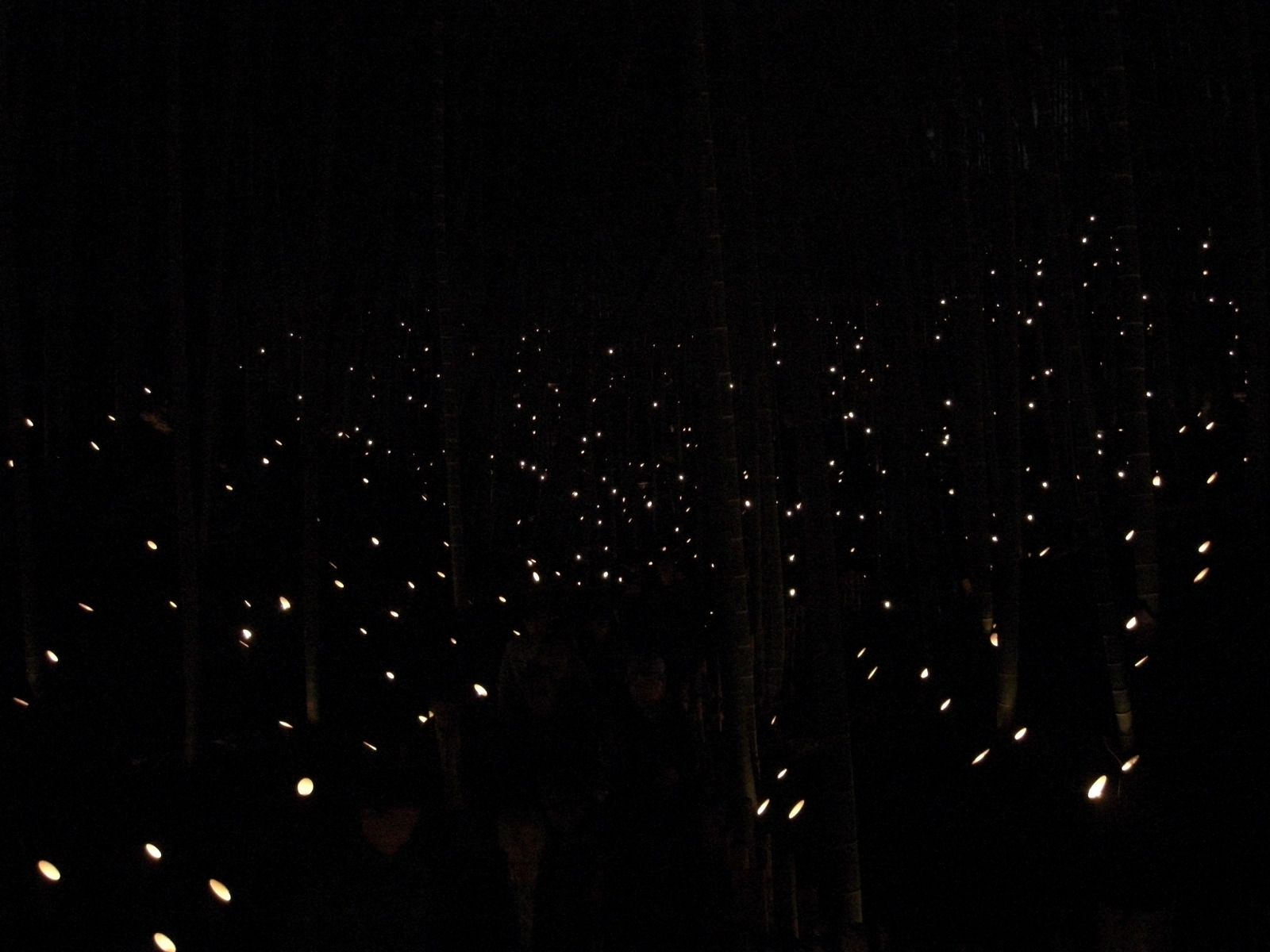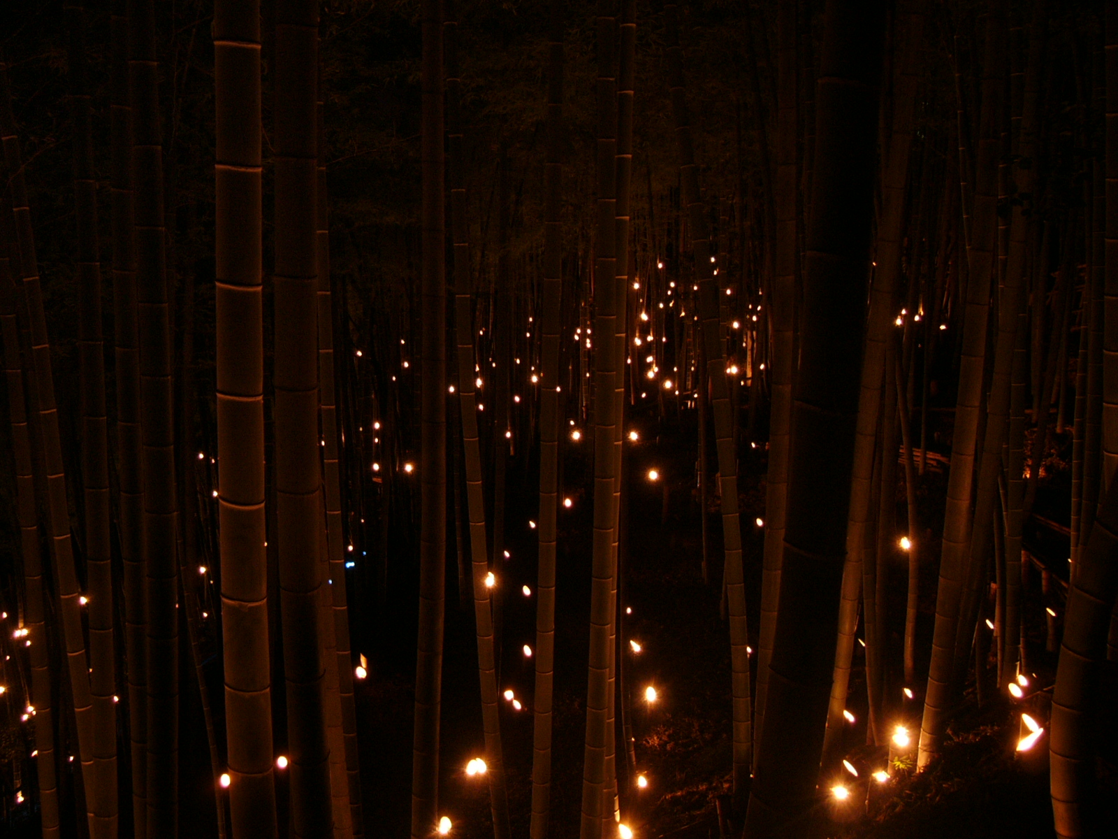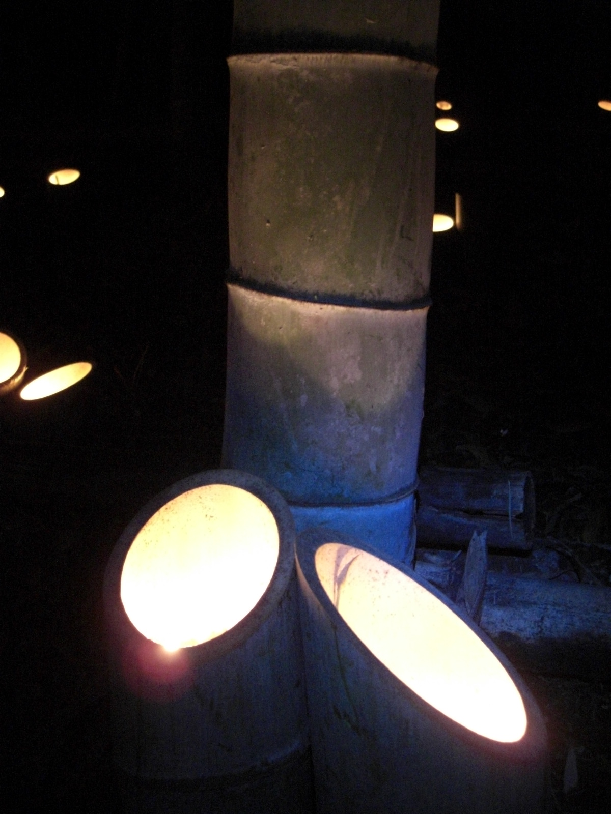 なだらかな階段を上がると左に奥深くまでの竹灯籠、正面に目を向けて少し目を上げるとロウソクの炎が竹灯籠内側に反射し、あたたかいおだやかな色が目に飛び込んできました。