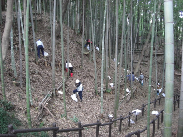 クラブ初の平日設定のフィールドで、毎月第2第4火曜日に毎回10人から15人のボランティアが、精力的に竹林の整備を手掛けています。