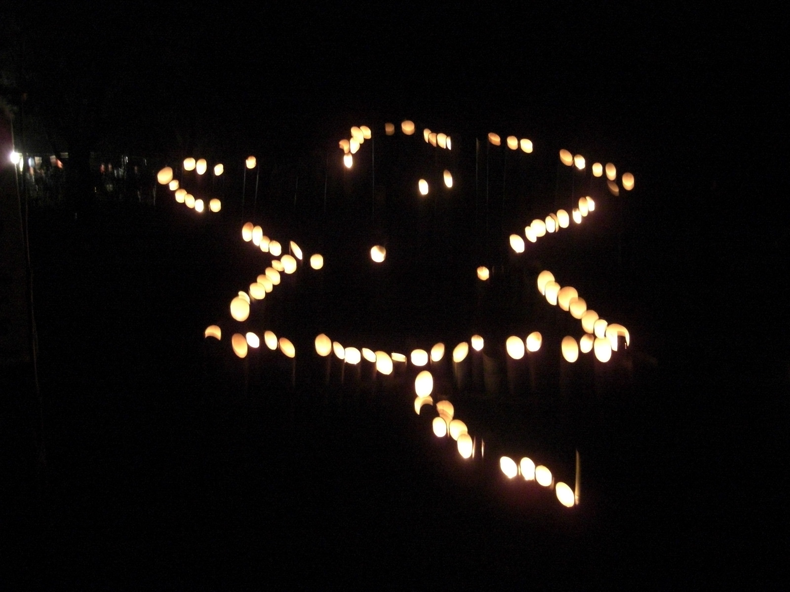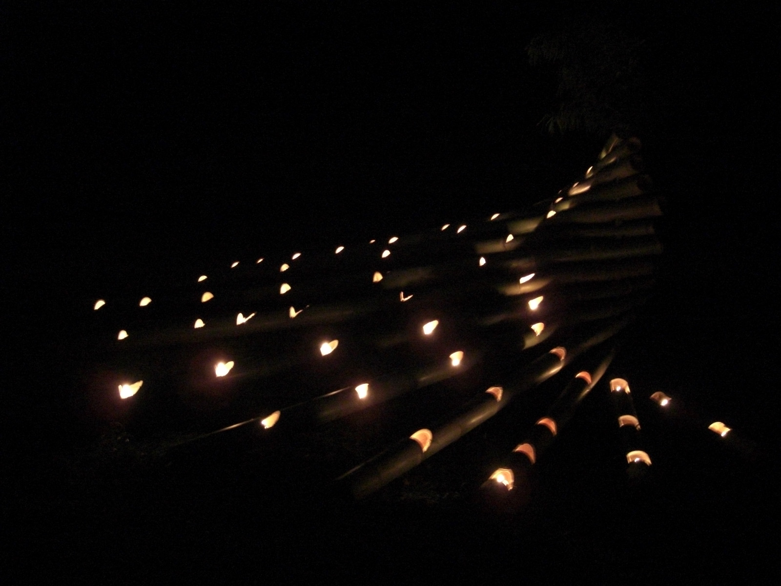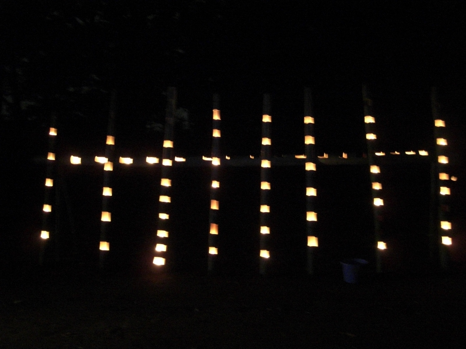 一昨年は台風一過吹き戻しの大風のある中の開催で、入口テニスコート側の竹灯籠が全滅、すべてあっという間に消えました。