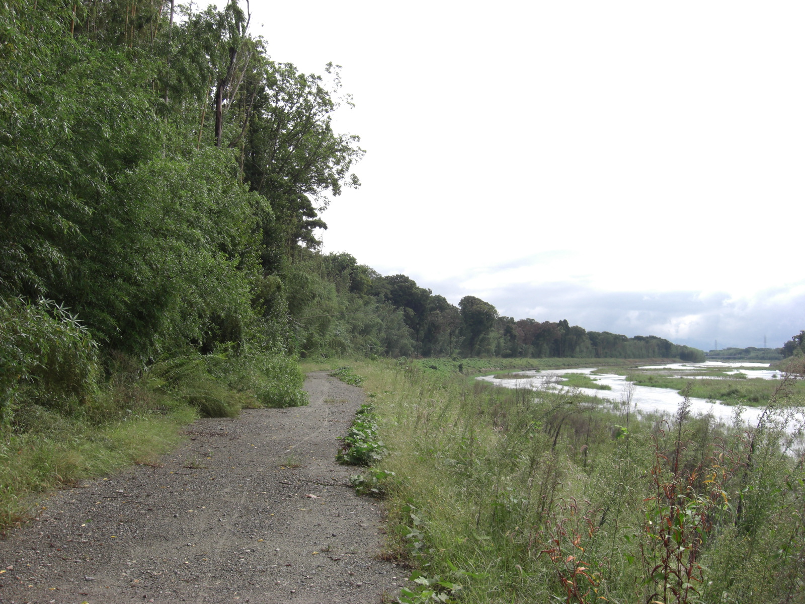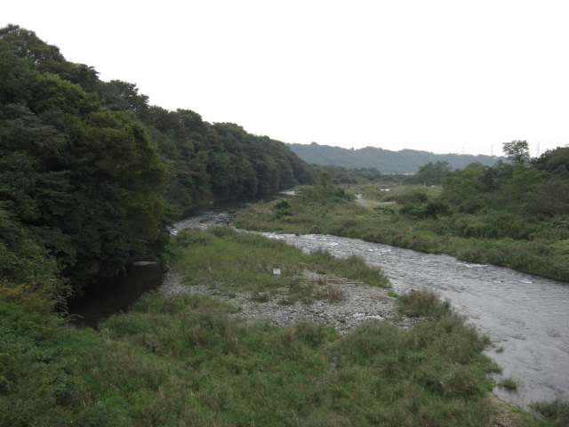 両岸は上流も下流も平坦地にマダケが延々と、堤防にはヒガンバナがたくさん咲いていました。