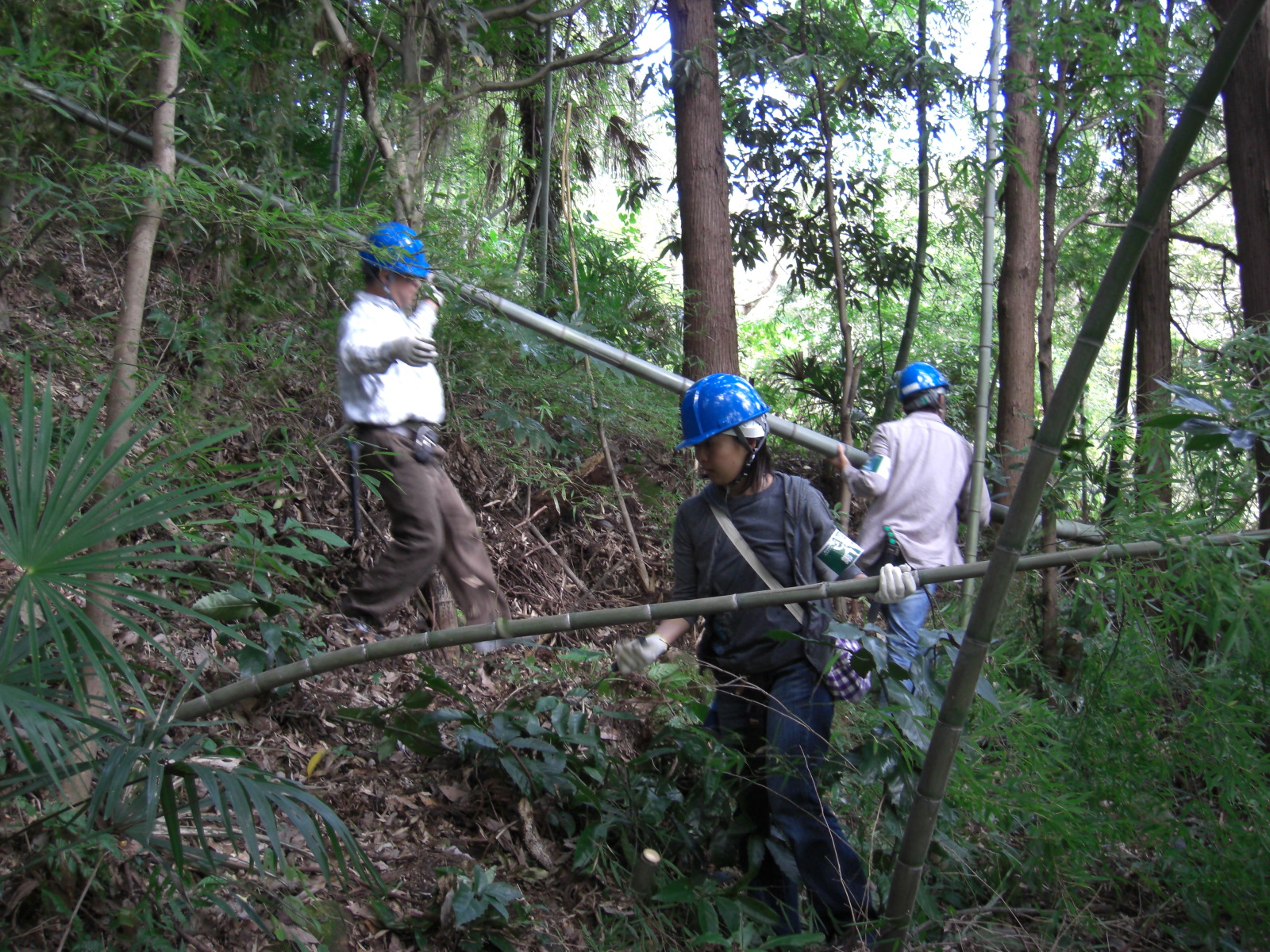 男性女性も藪の中でも見事に頑張ってイキイキ、伐り出すピッチもすばらしい。