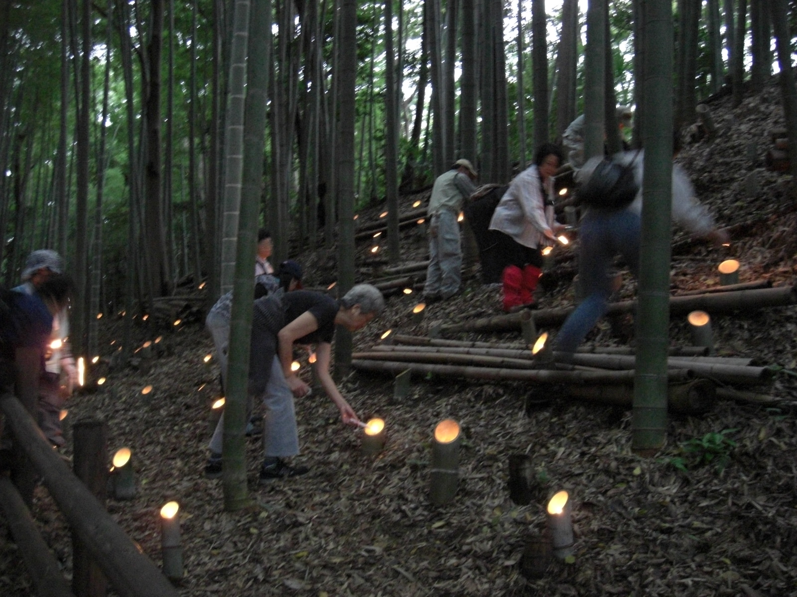 約3,500のロウソク消し回収、竹灯籠を下におろし、通路安全柵の撤去、雑木・竹林散策路通行止め撤去解除、飲食コーナー片付け、全線の安全確認、打ち上げはそのあと、ヘトヘトな充実感!!ヨカッタ!!うまくいった!!長かった1日。