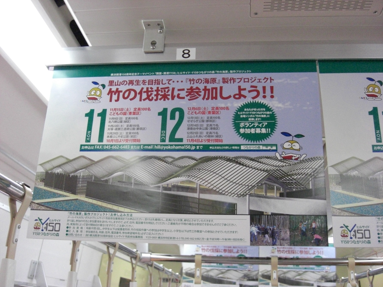 手前からハチク青竹、笹枝葉、ハチク枯竹 こどもの国線 開港150年 中吊り広告
