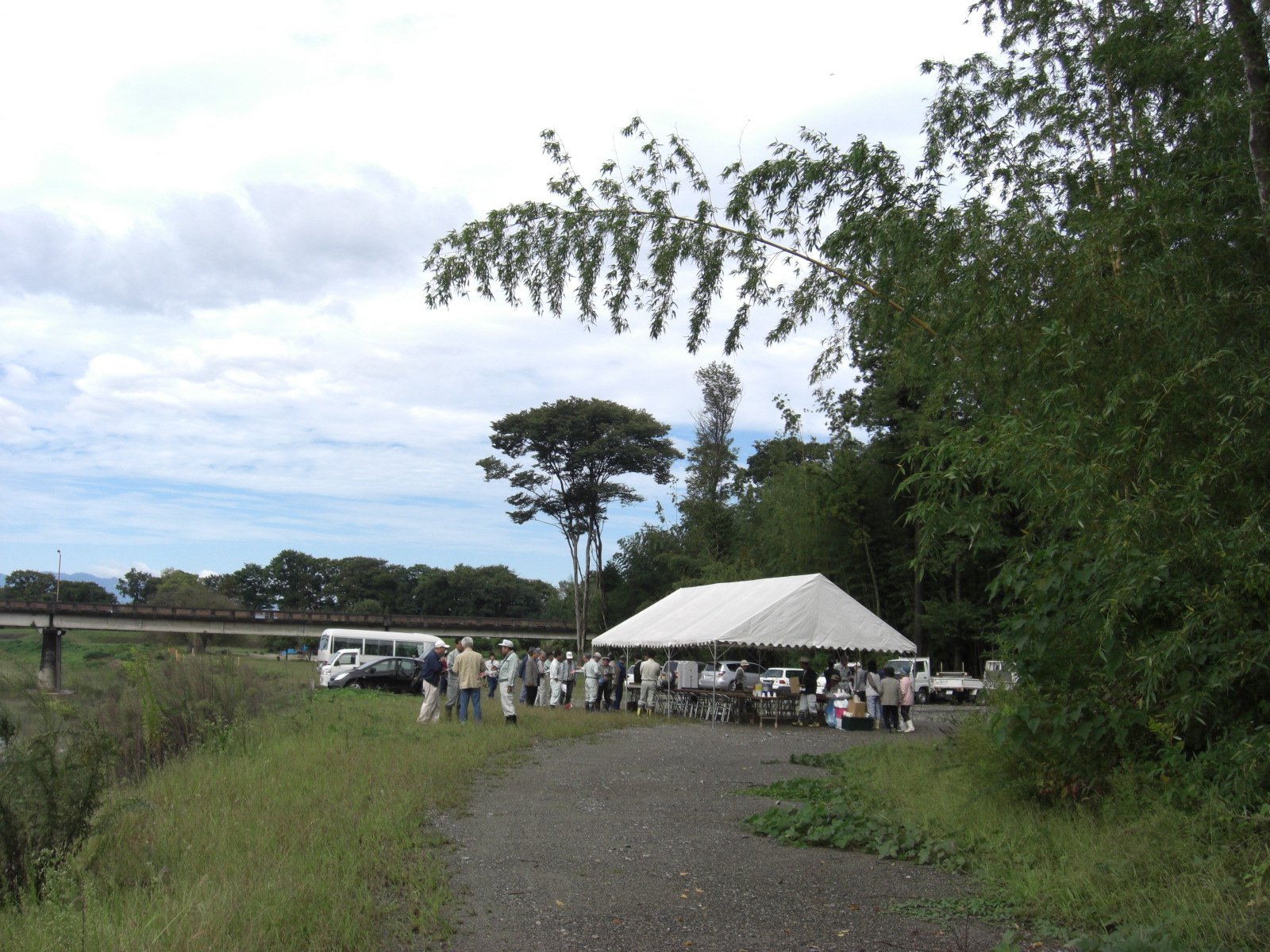 葉枝見橋を過ぎ上流際の河川敷会場に約1時間で到着しました。