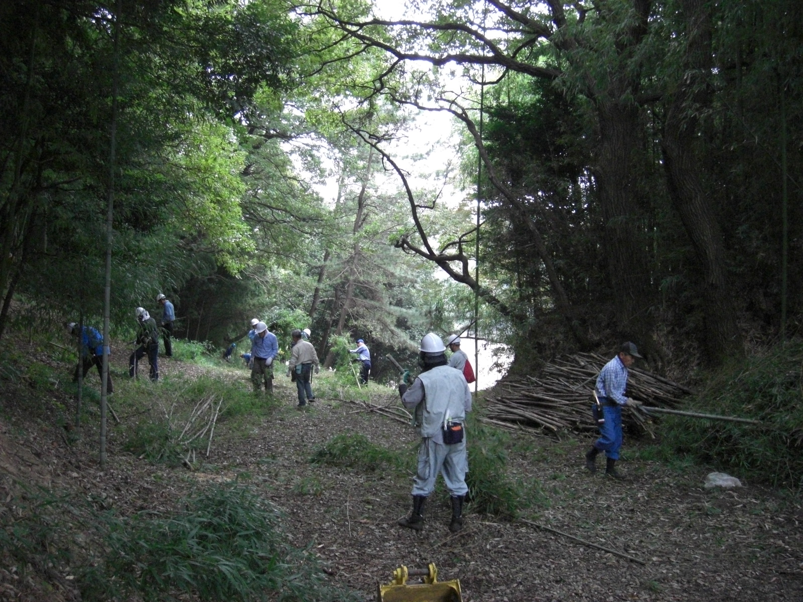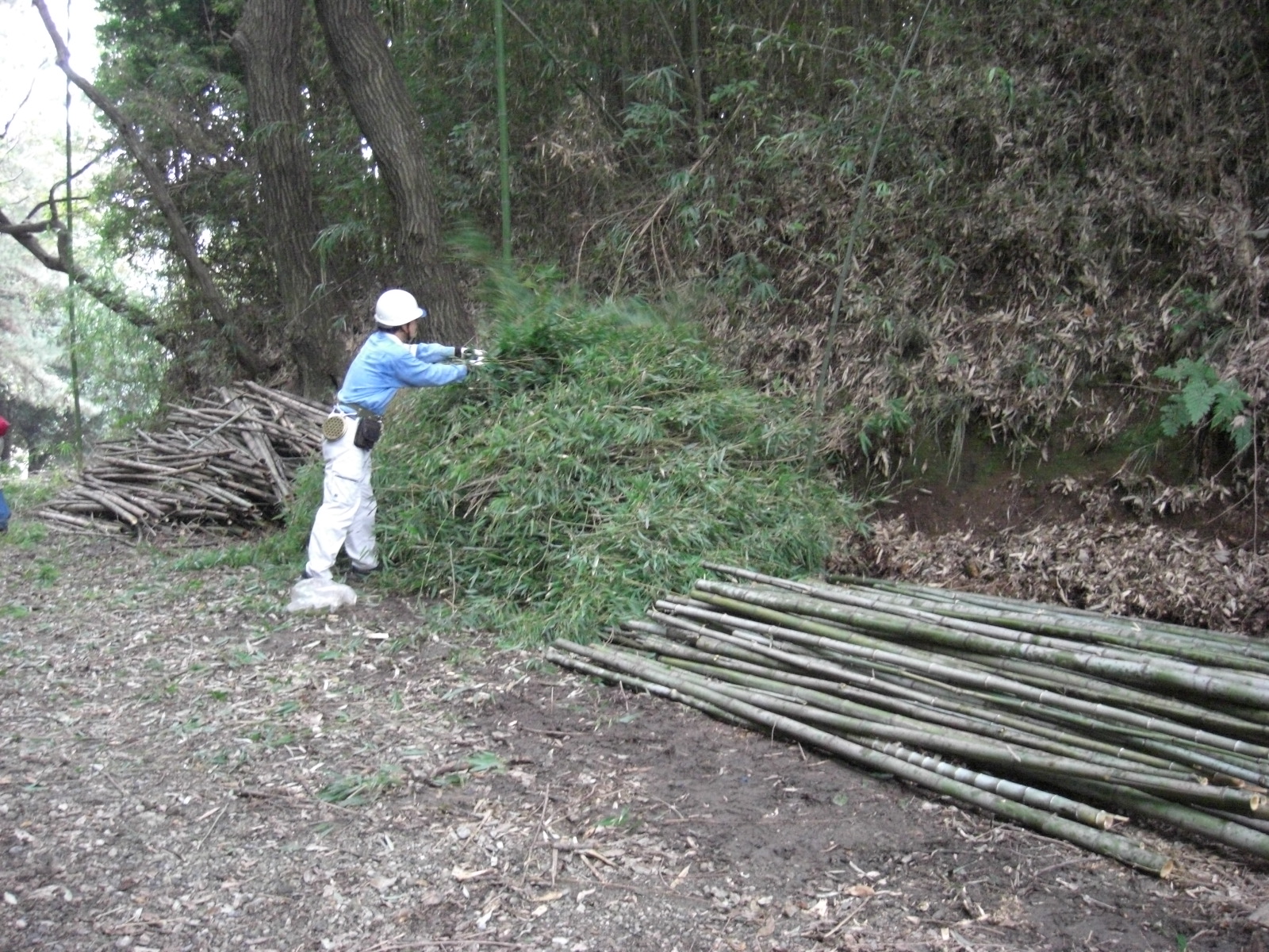 ということで着手前のミーティング時間も少し長く、班分け、道具の使い方、竹の切り方、笹枝葉の処理、安全作業のポイント等々。