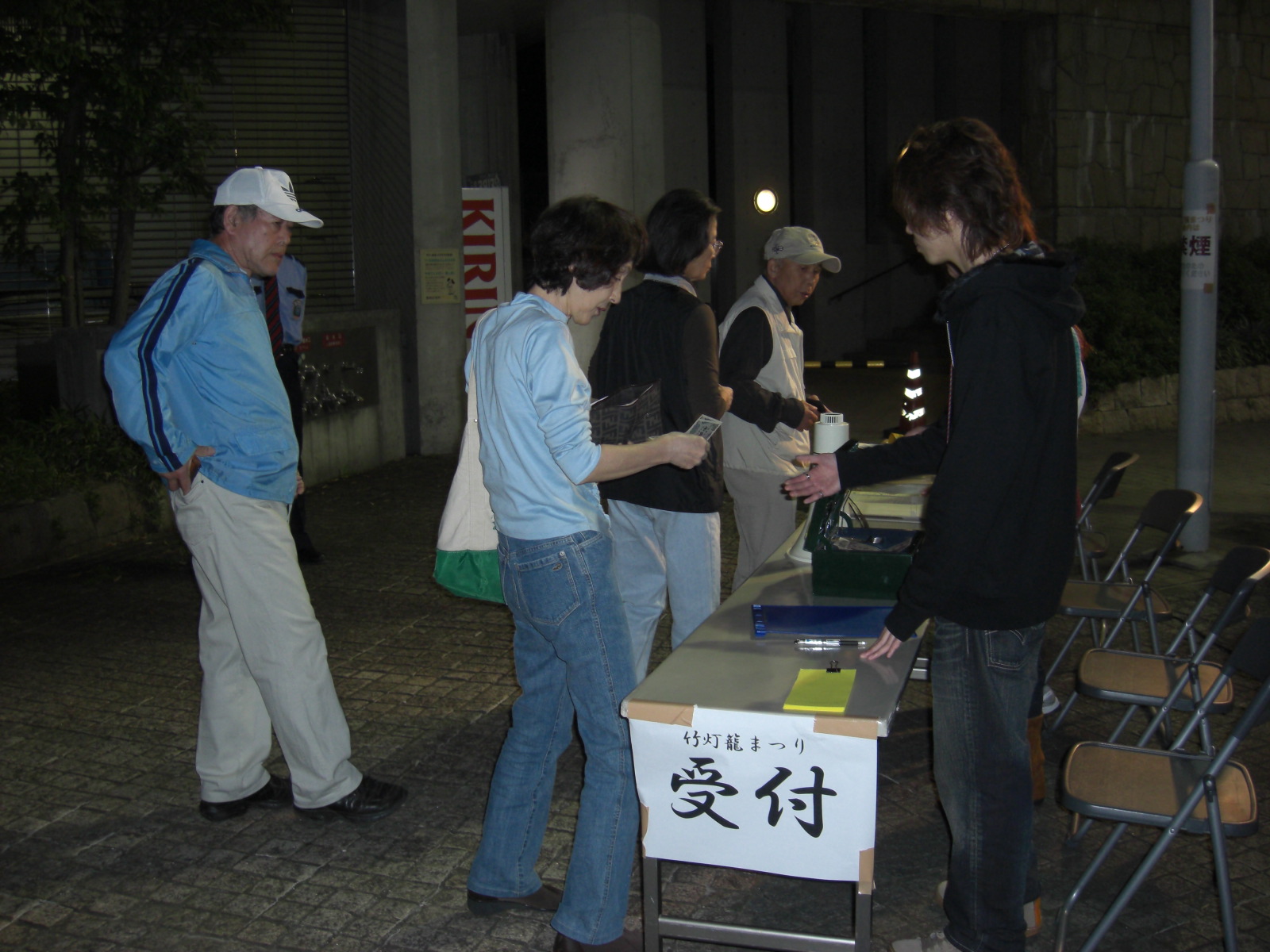 会場は5時30分から、周囲は薄暗く、いよいよ幽玄です。受付からトランシーバーで入場開始の連絡が流れました。
