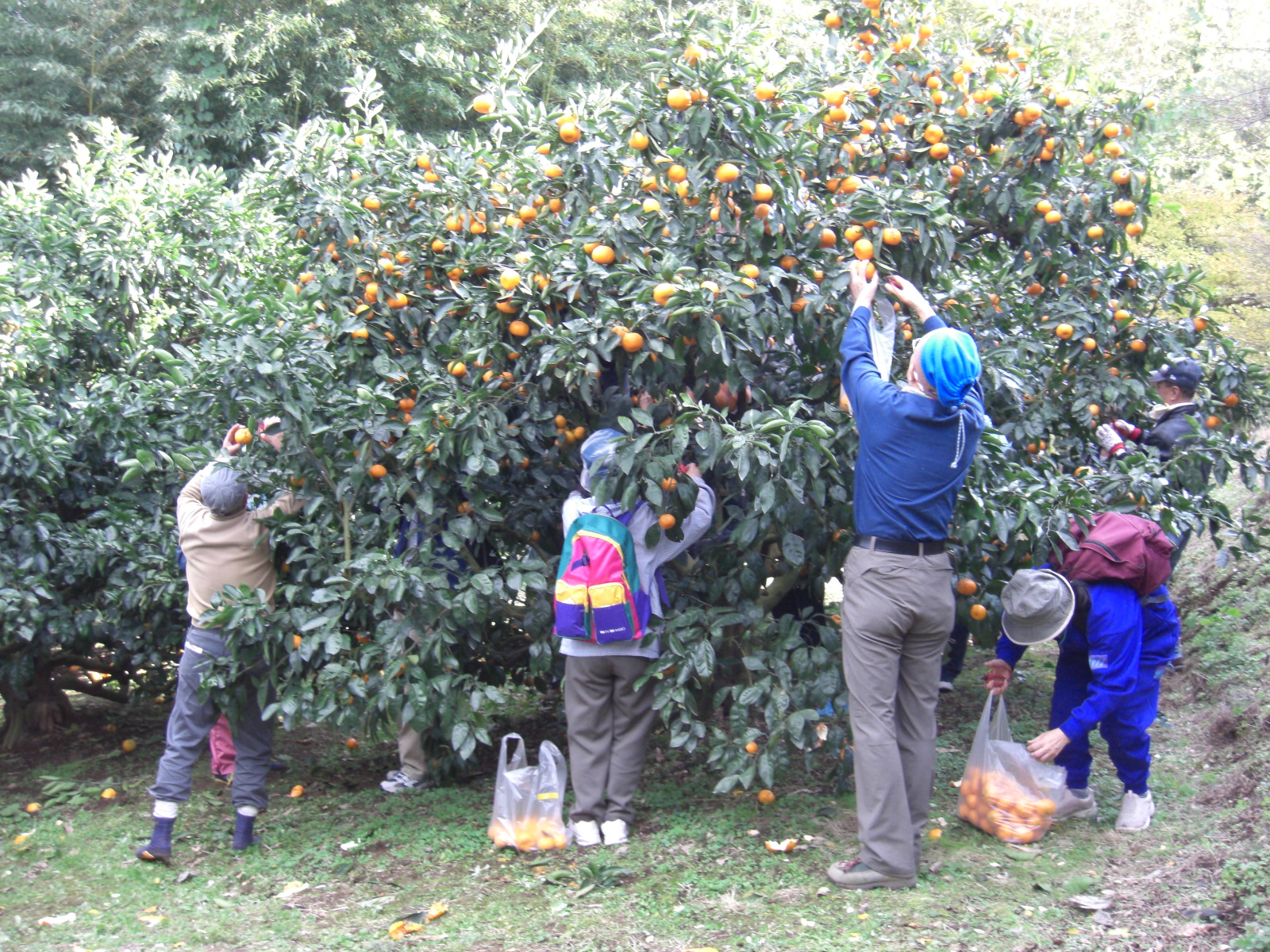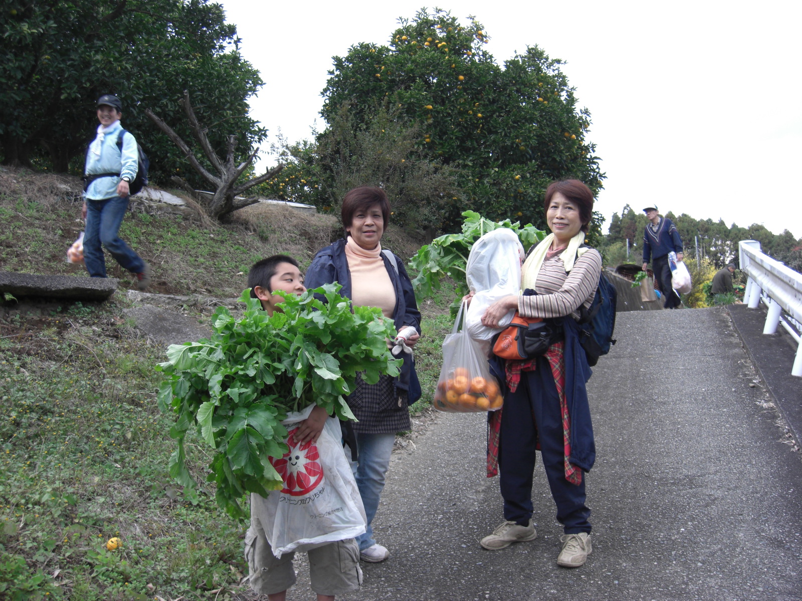 第二弾は中井中央公園の農産物直売所で日本の竹ファンクラブ発行地域通貨で野菜を買い求め、次は竹林すぐ上の農家でみかん狩りと大根等の収穫です。イソガシー!
