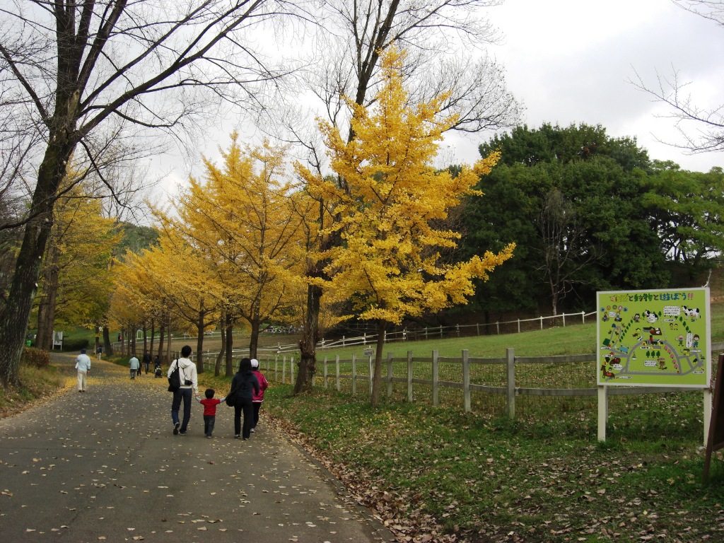 イチョウの葉が鮮やかに色つき、すでに全部が落ちた木もたくさんありました。