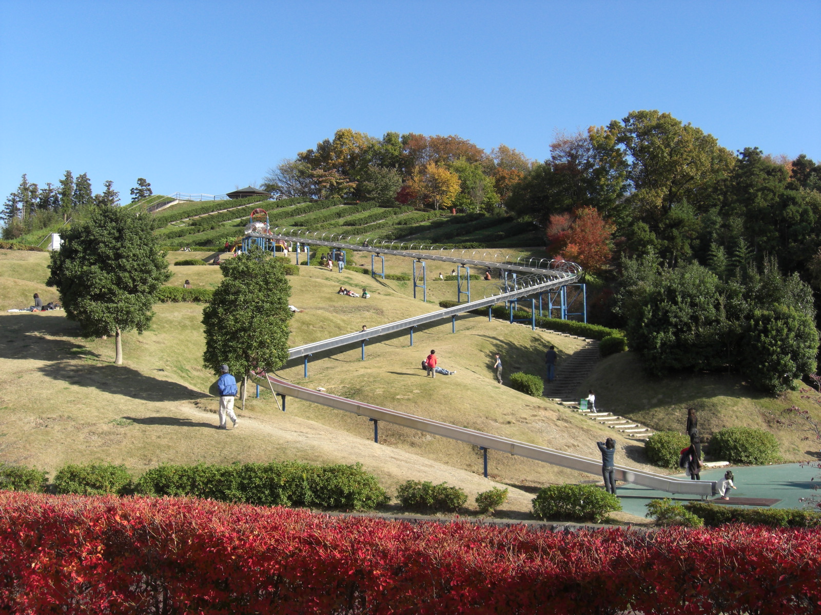 中井中央公園 富士山を背にパークゴルフ 全長101mの大ローラー滑り台