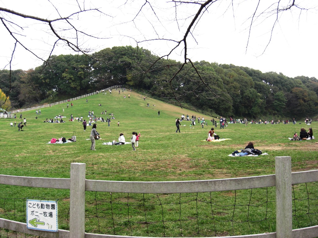 牧場開放日でモー!たくさんの家族連れがあちこちで昼のお弁当を広げていました。