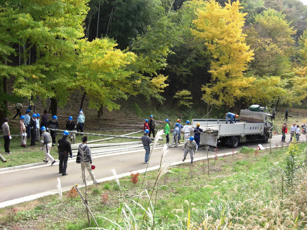 小春日和の11月15日、参加市民とスタッフ総勢60名での竹の間伐、ここのモウソウチクは構造用として手ごろな良い竹がいっぱいあります。