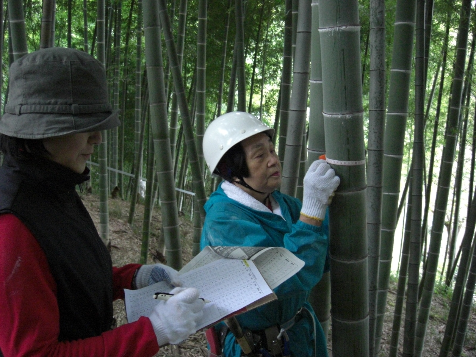 竹取協力隊午前中は中央部モウソウチクの生育調査をしました。