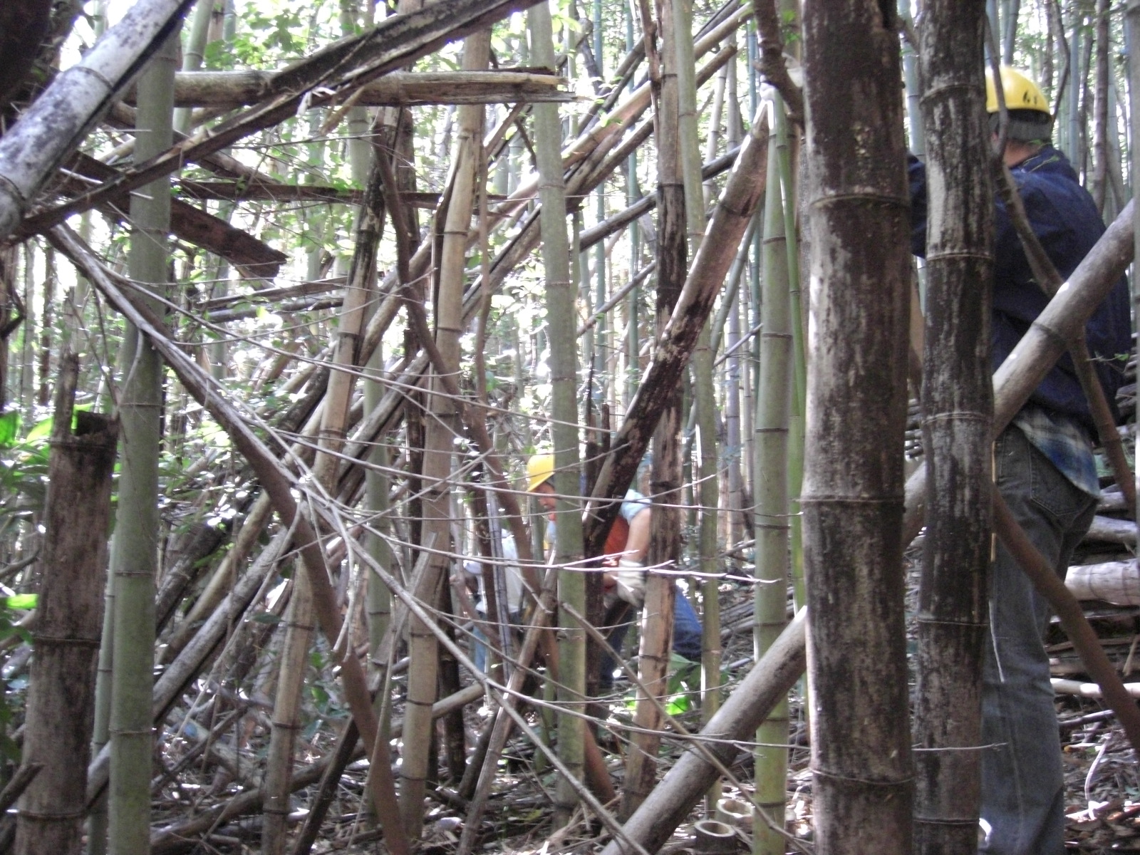 この地区はおもに細竹を中心の間伐作業と枯竹焼却を行ない、さらに美しいマダケ竹林になりつつあります。