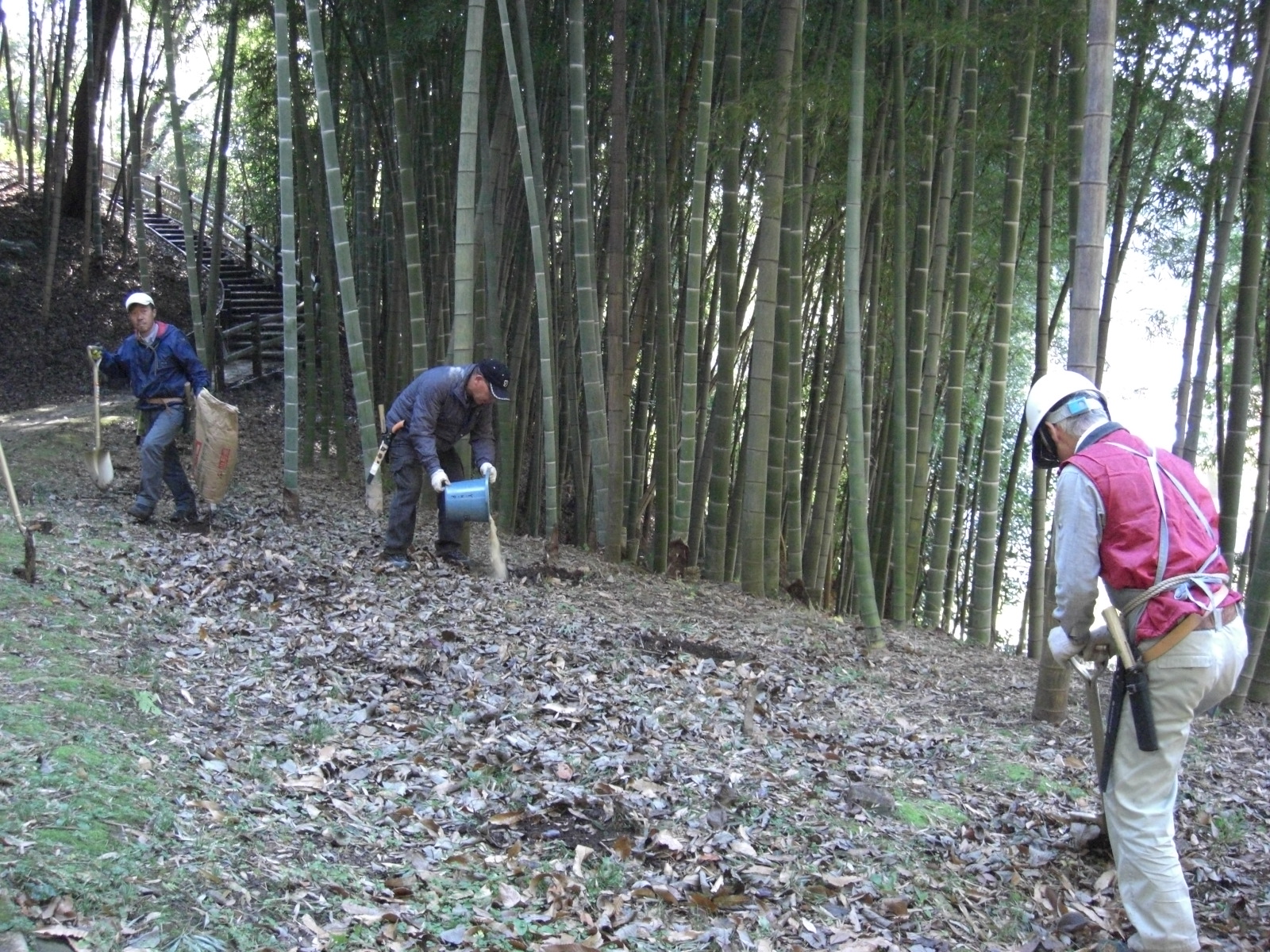 終了後は竹林のお化粧直しとして、中央部モウソウチクの間伐に汗を流しました。