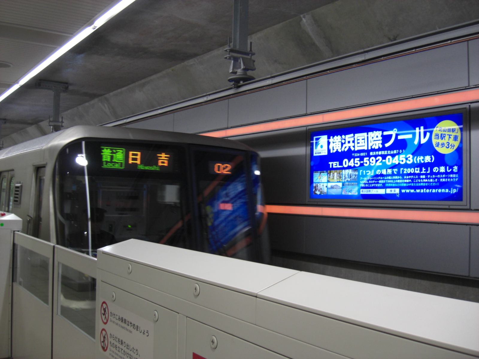 大江戸線と同じリニアカー方式の地下鉄 北山田駅の開国博Y150ポスター