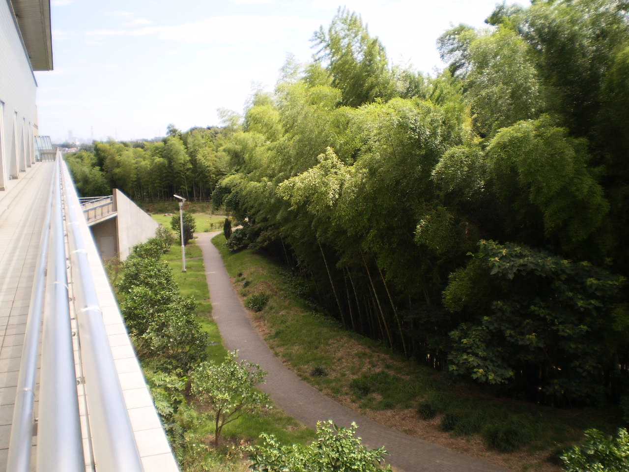 横浜国際プールではテニスコートに一組がプレー、散策園路に入ると強い風で竹が大きく揺れて、葉がすれる音とセミの大きな鳴き声の合唱でした。