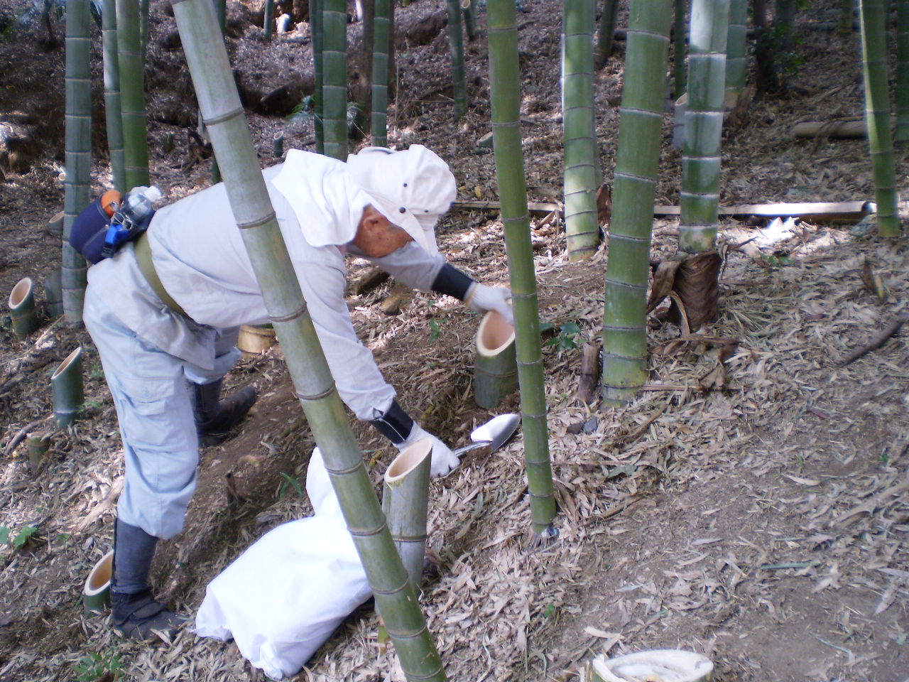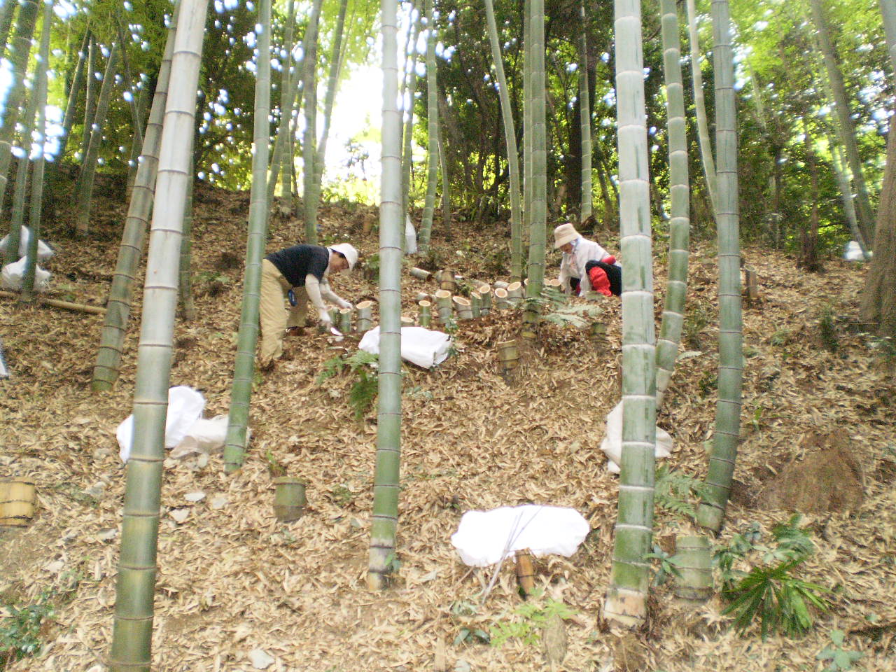 今日は日本の竹ファンクラブ6番目の新しい竹林フィールド、伊豆の国市からのお客さんもお迎えし、今後予定されている竹灯籠まつりに向けて視察をしていただきました。