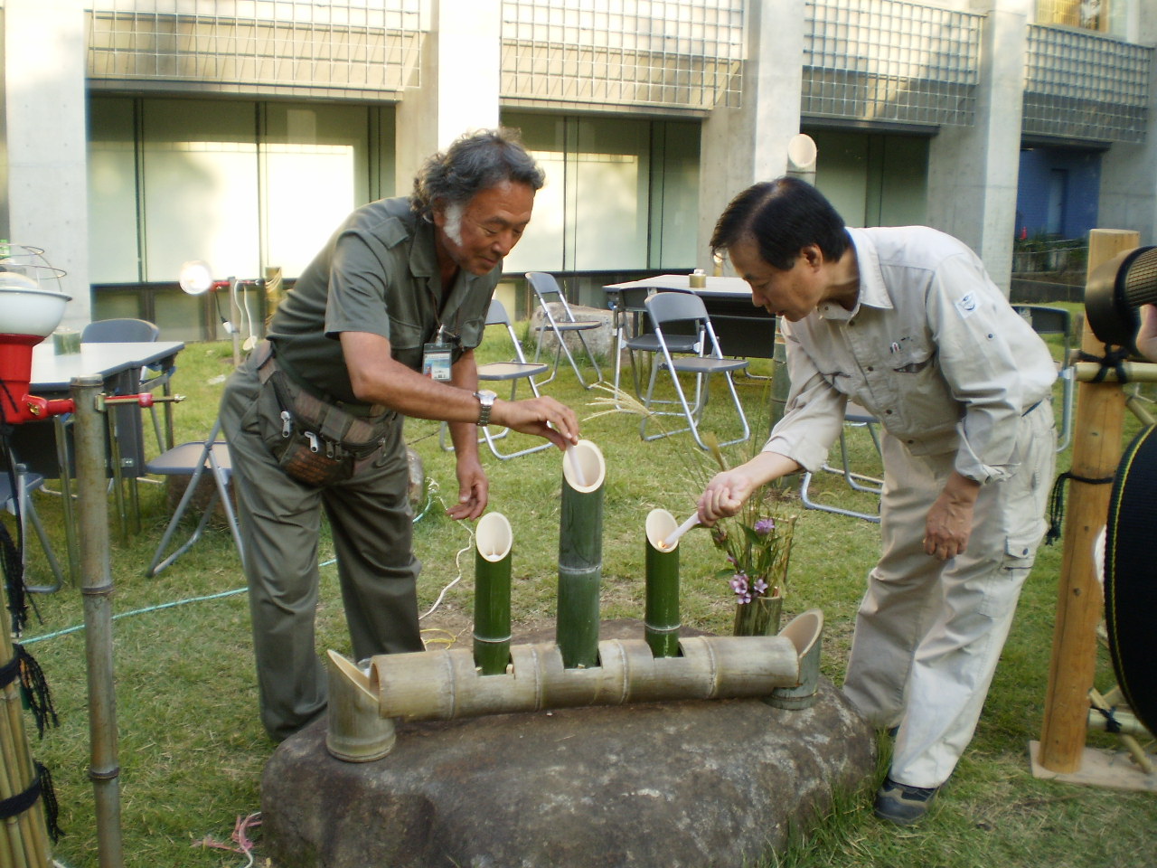 今年は横浜国際プールスタッフの参加も多く、午前中順調に竹灯籠への水入れが済み一部ロウソクが入るという早さでした。