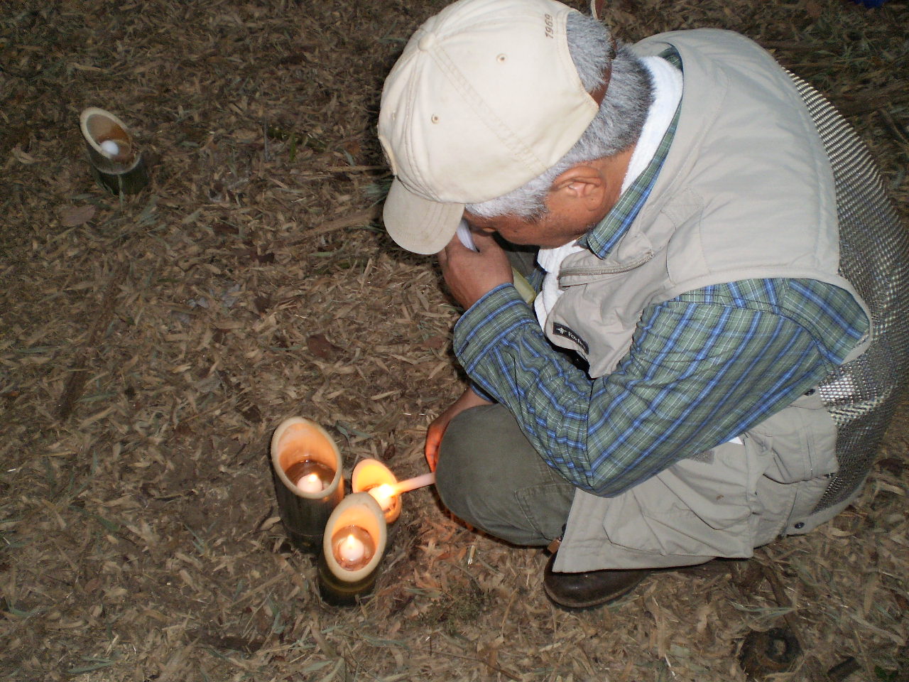 8月22日から始まった竹伐り出しは暑い中、太い竹を汗だくで切りましたが、季節はいつの間にか秋、竹灯籠を灯す日を迎えるころは夜は寒ささえ感じました。