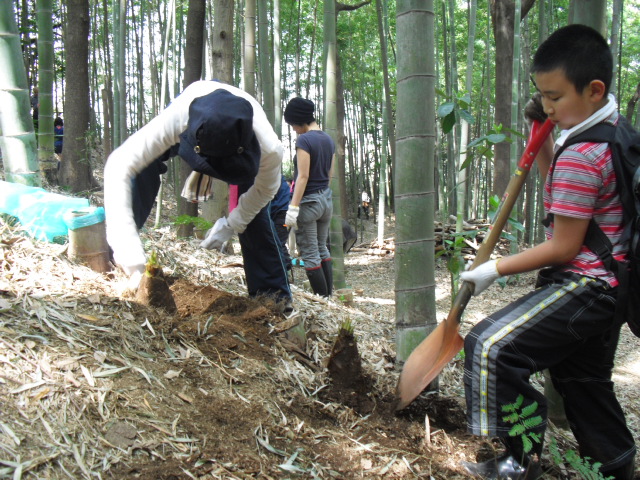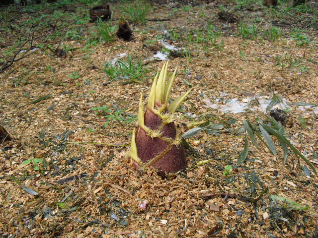 時間はたっぷりとあり、お助けマンのリーダーにあちこちから掛かる声、そのスコップも地下茎に阻まれて掘れない、しかし形はぐっと良いたけのこ。