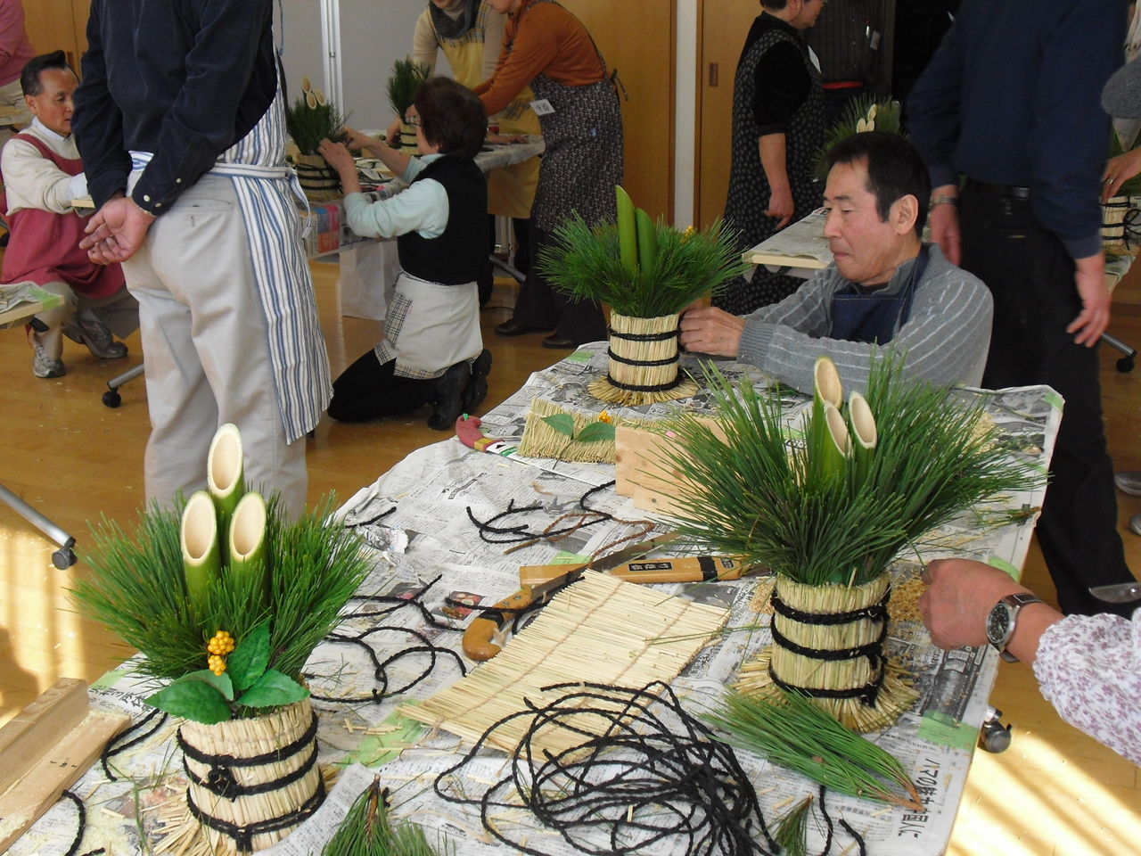 締めは新春のお飾り、区民施設の大綱中学コミュニティハウスと城郷小机地区センター開催のミニ門松作り。指導協力に出向いたベテランのもと、みなさんが見事に完成しました。 (NGS)