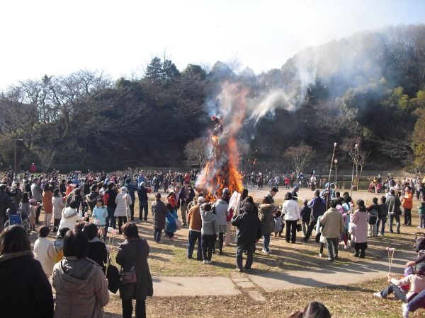 どんど焼きと凧上げ