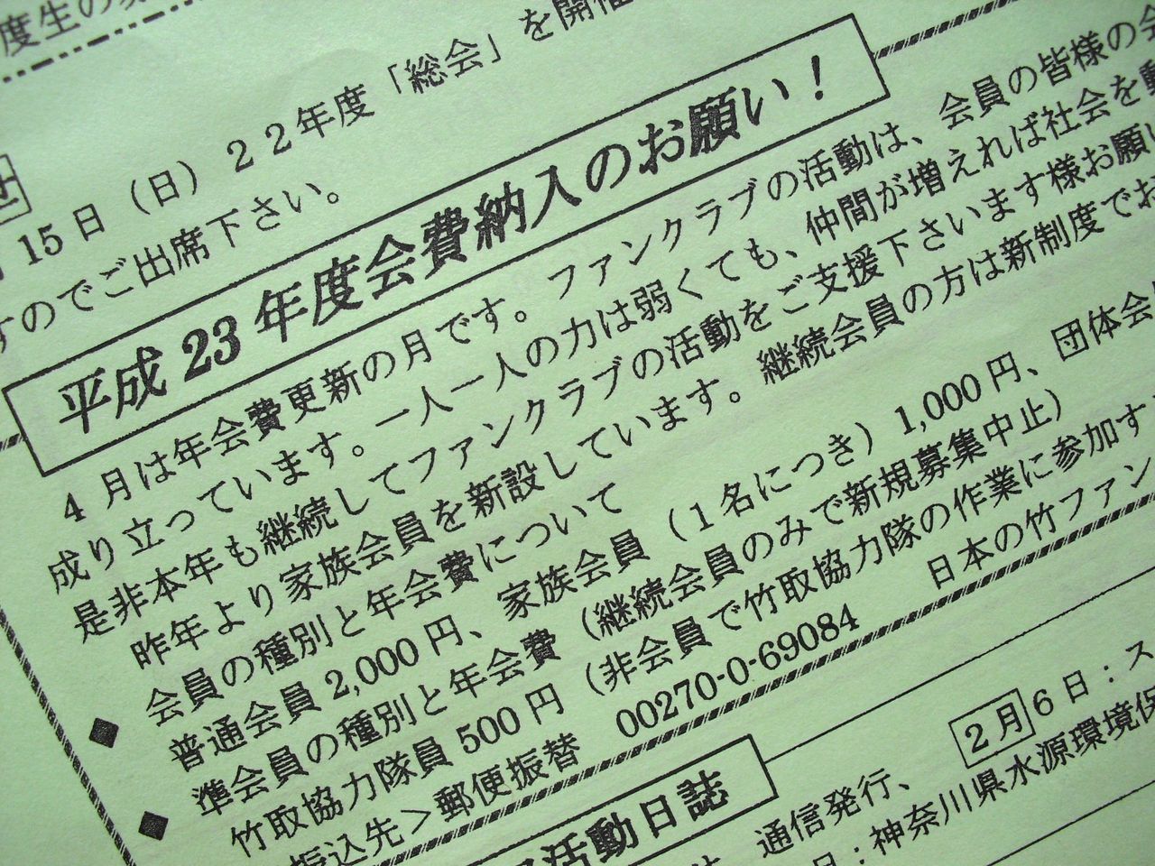 また準会員扱い、非会員の竹取協力隊員年会費は既継続隊員のみとなった。