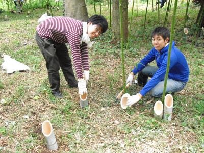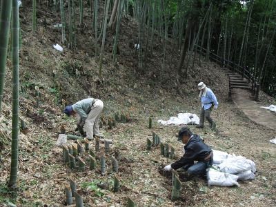 (写真はそこまで待てない有志面々が間伐した竹の前での参加者)
