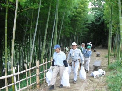 いつでもどこでも、竹林の整備に入ると休憩の号令が出ても整備し続ける会員、休憩をしてもほんの数分でいつの間にか誰かしら再開、一日終わってみればその景観は、朝とは見違える素晴らしい環境となるのが日本の竹ファンクラブ流。ご自分の状況で活動できる竹林が6か所もある、しかも間伐することで地球環境改善を参加の都度実感できるうれしさと楽しさ、そりゃビールもうまいし「かっぽ酒」も飲みたくなる。