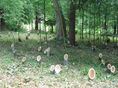 お待たせしました。いよいよとなりました!残暑厳しい中を竹林では間伐が始まり、材料の活用そして最大のお楽しみが進みます。
