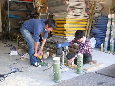 今年で第6回目の開催を迎える横浜国際プール竹林では、このようにして丸ノコ4台が金属音を出し、平日にはチッパー機も稼働して竹灯籠の製作、設置がもうひと踏ん張りというところです。