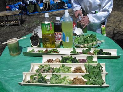 これまた毎度の自分のお皿は竹で、そして箸も竹でつくりなさい