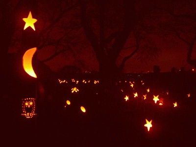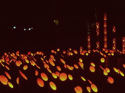 いつもの竹林内と違う平坦地でのコンパクトな竹灯籠まつり